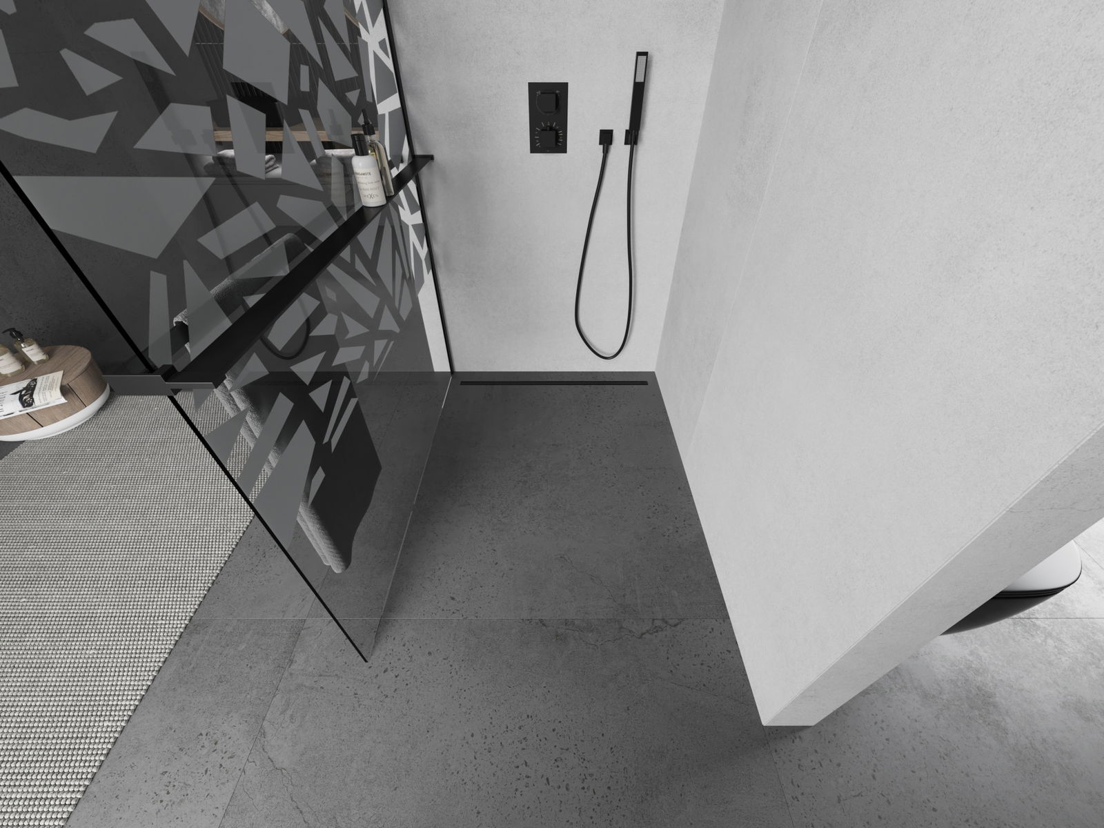 Mexen Kioto+ sprchová stena s poličkou Walk-in 70 x 200 cm, biely vzor, čierna - 800-070-121-70-85