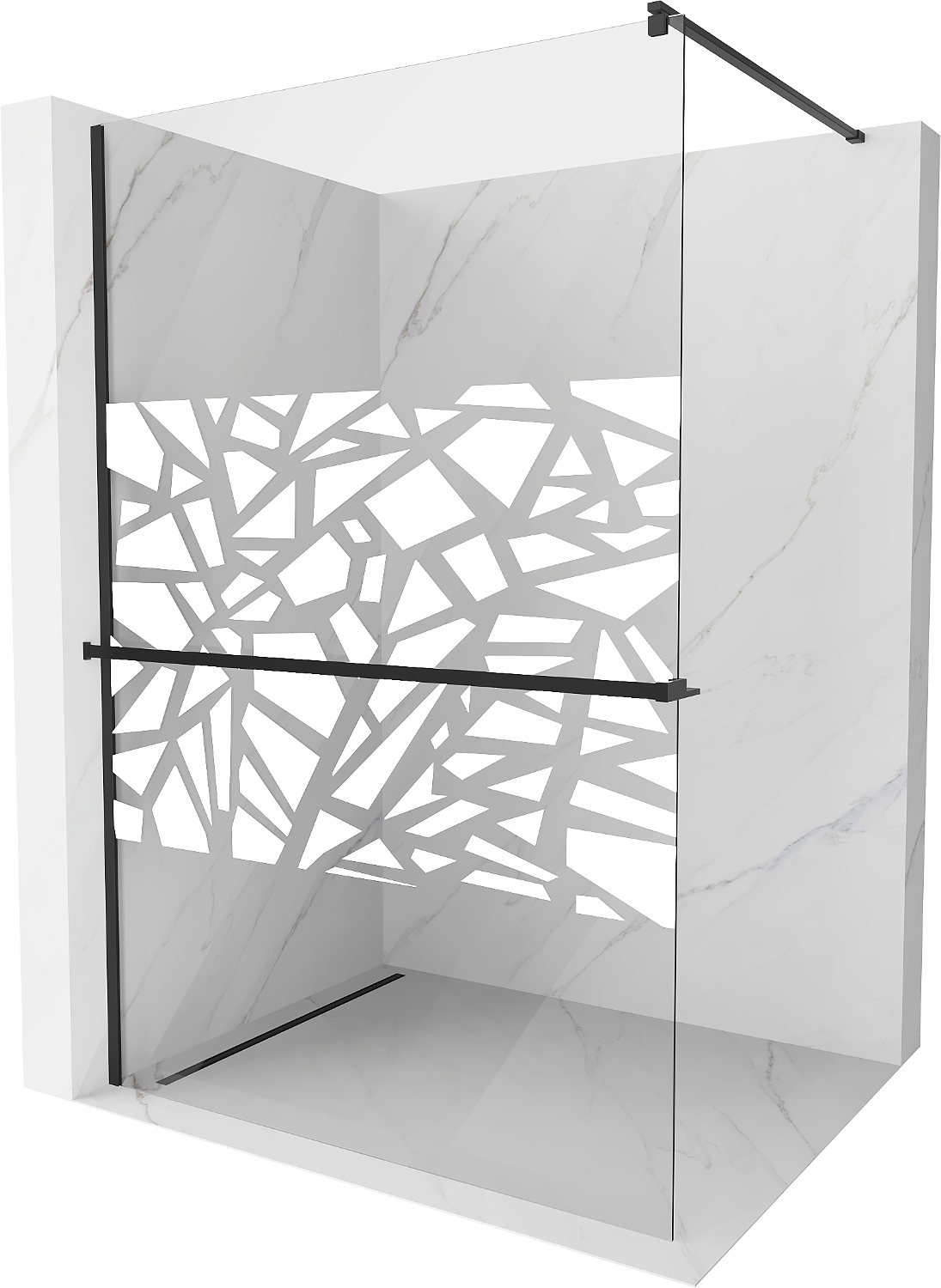 Mexen Kioto+ sprchová stena s policou Walk-in 110 x 200 cm, biely vzor, čierna - 800-110-121-70-85