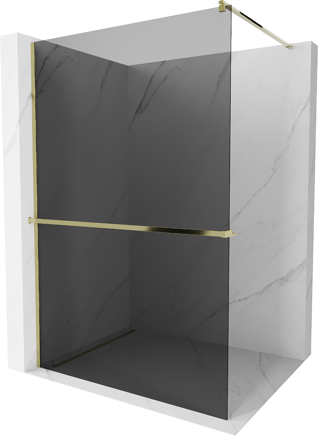 Mexen Kioto+ sprchová stena s poličkou Walk-in 90 x 200 cm, grafitová, zlatá - 800-090-121-50-40