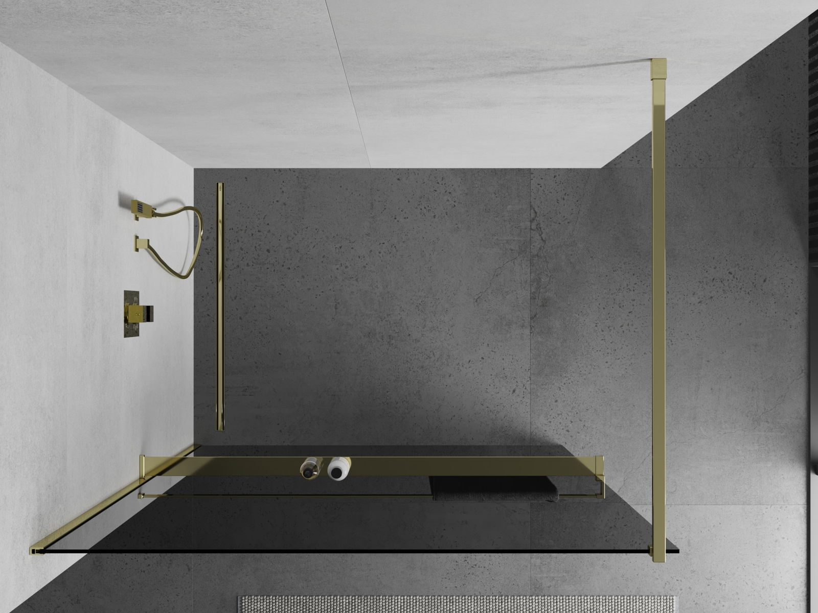 Mexen Kioto+ sprchová stena s policou Walk-in 100 x 200 cm, grafitová, zlatá - 800-100-121-50-40