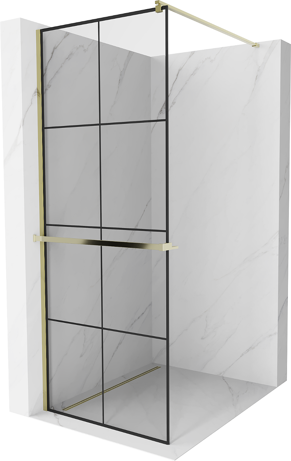 Mexen Kioto+ sprchová stena s poličkou Walk-in 90 x 200 cm, čierna mriežka, zlatá - 800-090-121-50-77