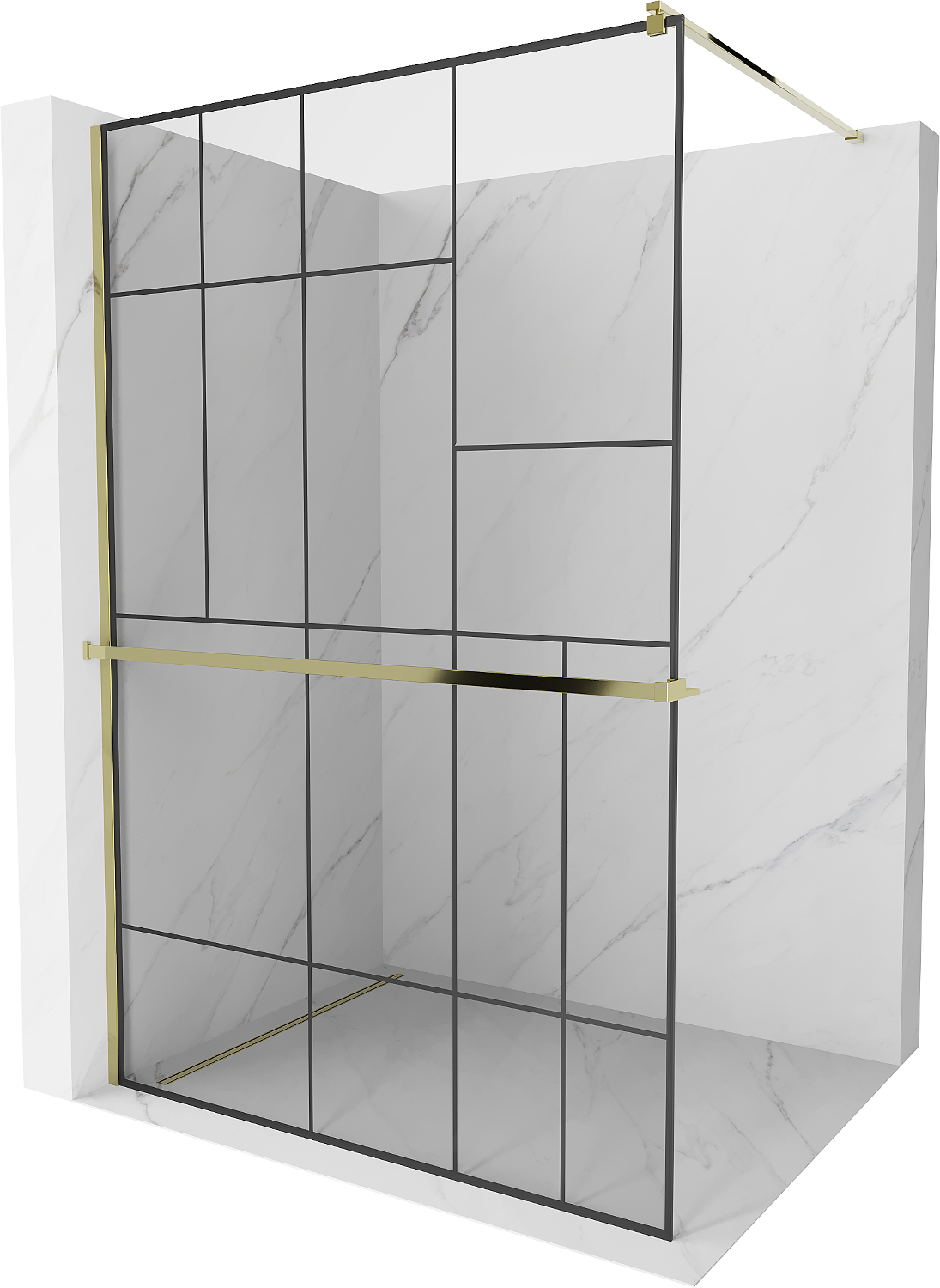 Mexen Kioto+ sprchová stena s poličkou Walk-in 120 x 200 cm, čierny vzor, zlatý - 800-120-121-50-78