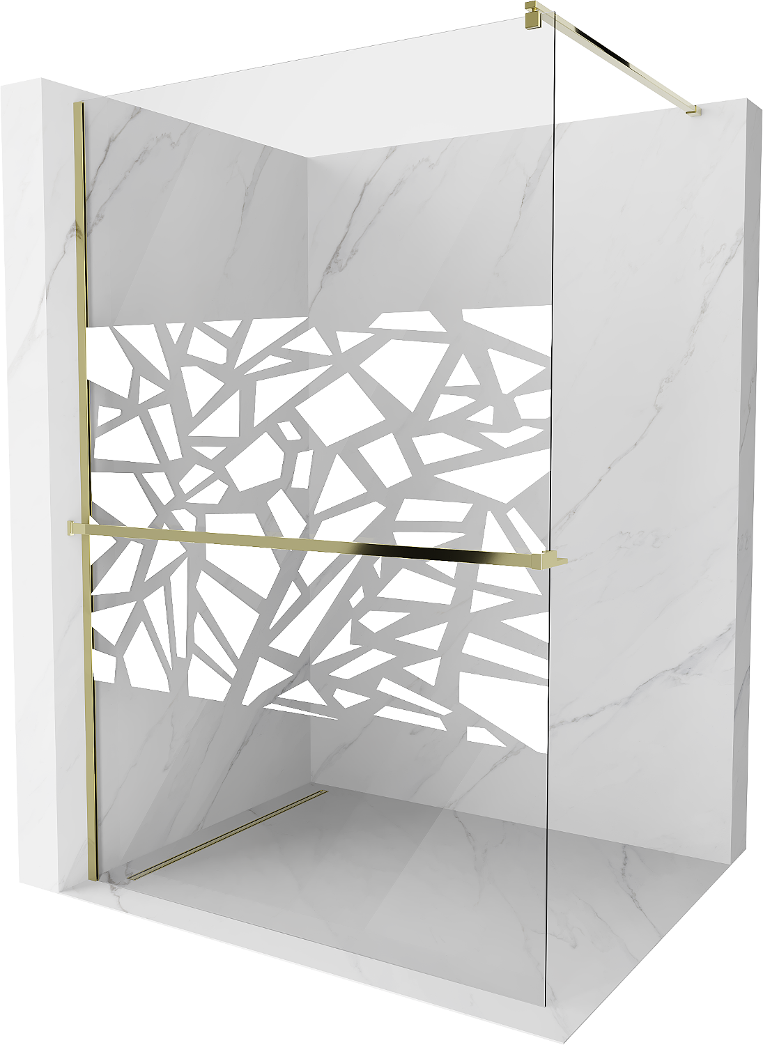 Mexen Kioto+ sprchová stena s poličkou Walk-in 90 x 200 cm, biely vzor, zlatá - 800-090-121-50-85