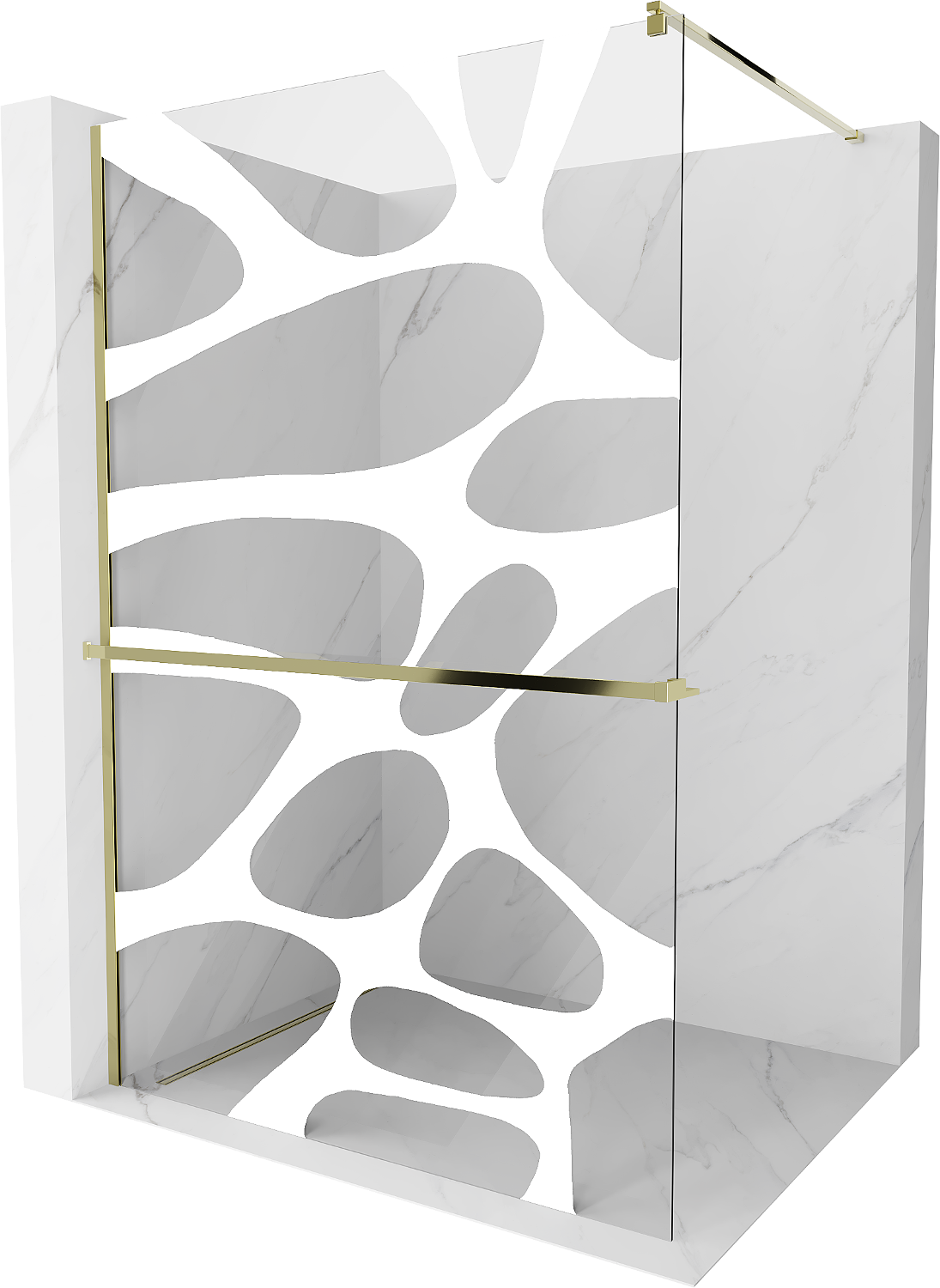 Mexen Kioto+ sprchová stena s policou Walk-in 100 x 200 cm, biela vlna, zlatá - 800-100-121-50-97