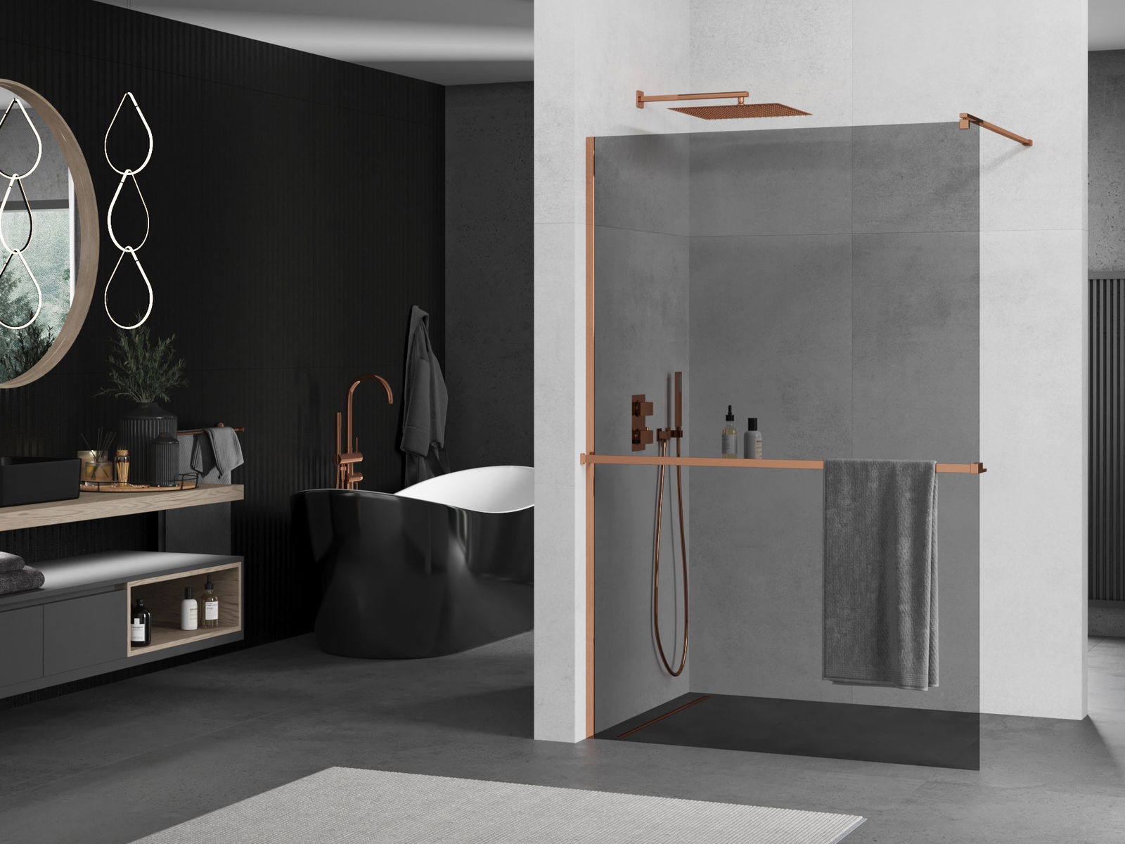 Mexen Kioto+ sprchová stena s poličkou Walk-in 110 x 200 cm, grafit, ružové zlato - 800-110-121-60-40