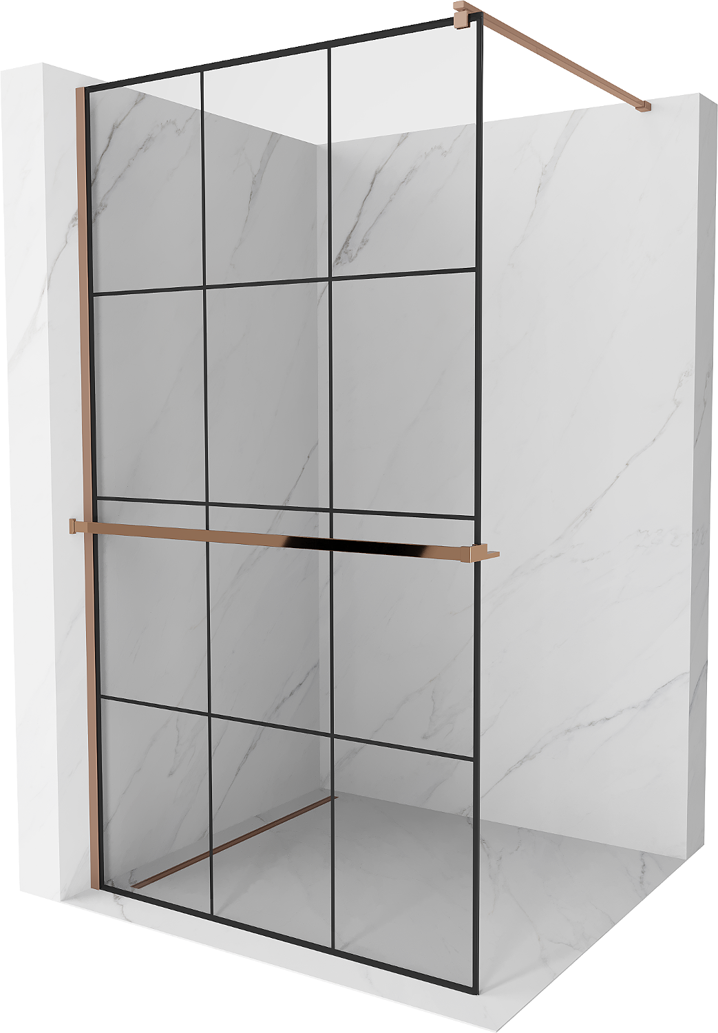 Mexen Kioto+ sprchová stena s poličkou Walk-in 110 x 200 cm, čierna mriežka, ružové zlato - 800-110-121-60-77