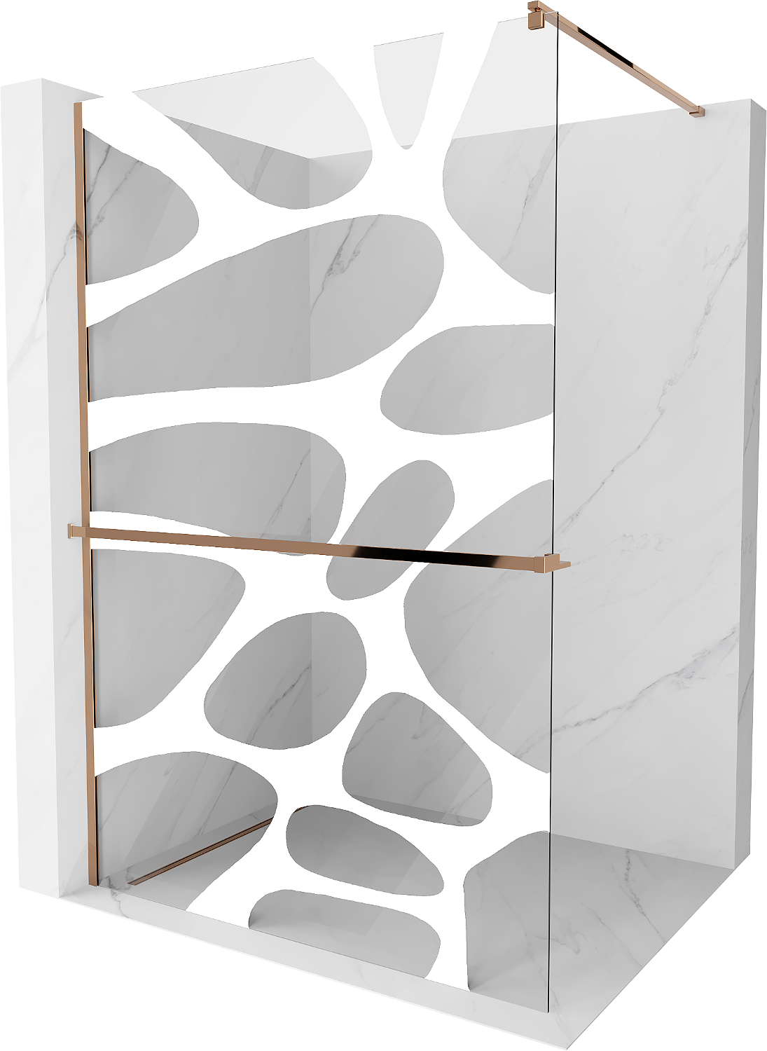 Mexen Kioto+ sprchová stena s policou Walk-in 110 x 200 cm, biela vlna, ružové zlato - 800-110-121-60-97