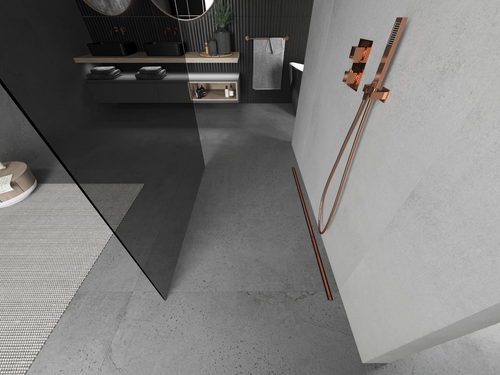 Mexen Kioto sprchová stena voľne stojaca 110 x 200 cm, grafit 8 mm, ružové zlato - 800-110-002-60-40
