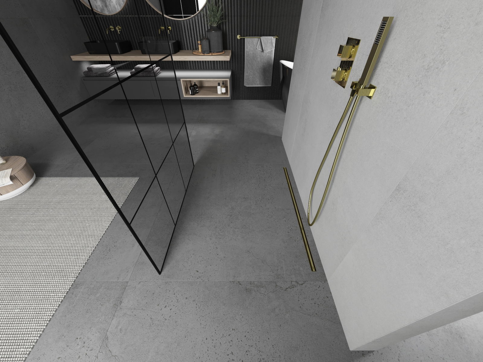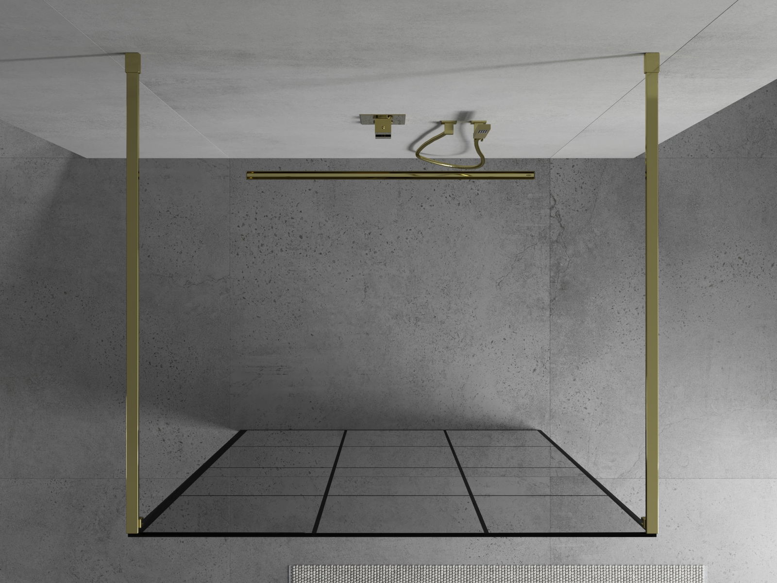 Mexen Kioto samostatne stojaca sprchova stena 120 x 200 cm, čierna mriežka 8 mm, zlatá - 800-120-002-50-77