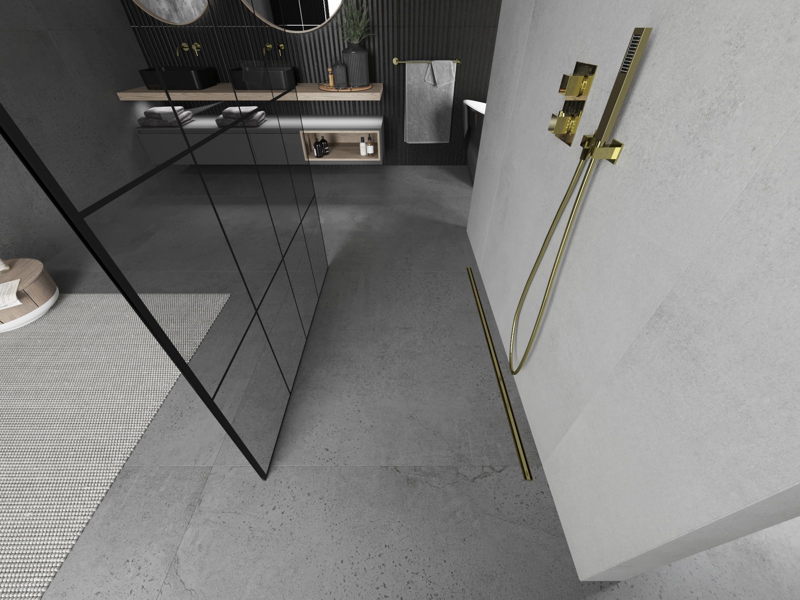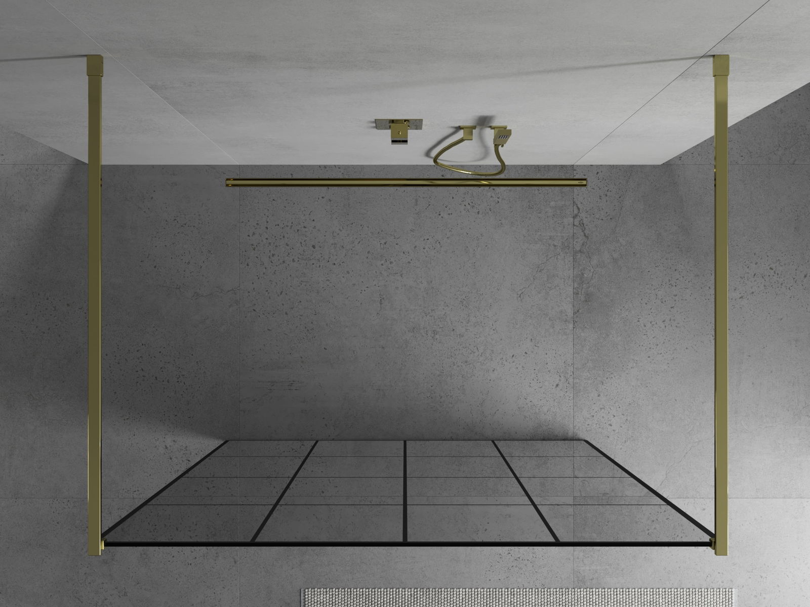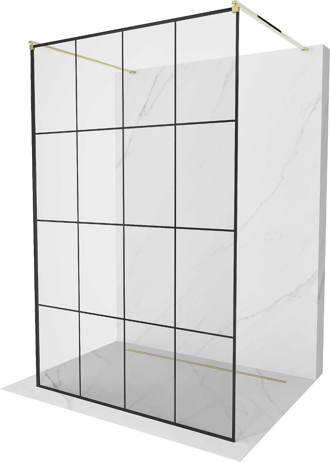 Mexen Kioto voľne stojaca sprchová stena 130 x 200 cm, čierna mriežka 8 mm, zlatá - 800-130-002-50-77