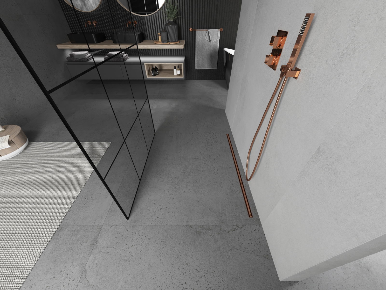 Mexen Kioto voľne stojaca sprchová stena 110 x 200 cm, čierna mriežka 8 mm, ružové zlato - 800-110-002-60-77