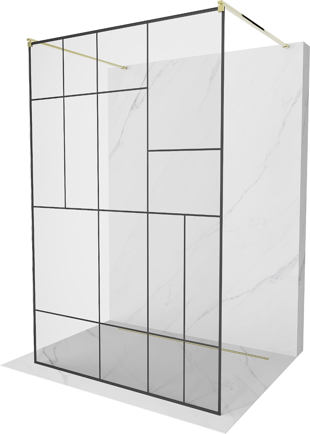 Mexen Kioto voľne stojaca sprchová stena 100 x 200 cm, čierny vzor 8 mm, zlatá - 800-100-002-50-78