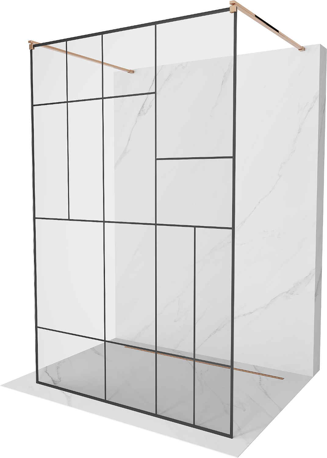 Mexen Kioto voľne stojaca sprchová stena 100 x 200 cm, čierny vzor 8 mm, ružové zlato - 800-100-002-60-78