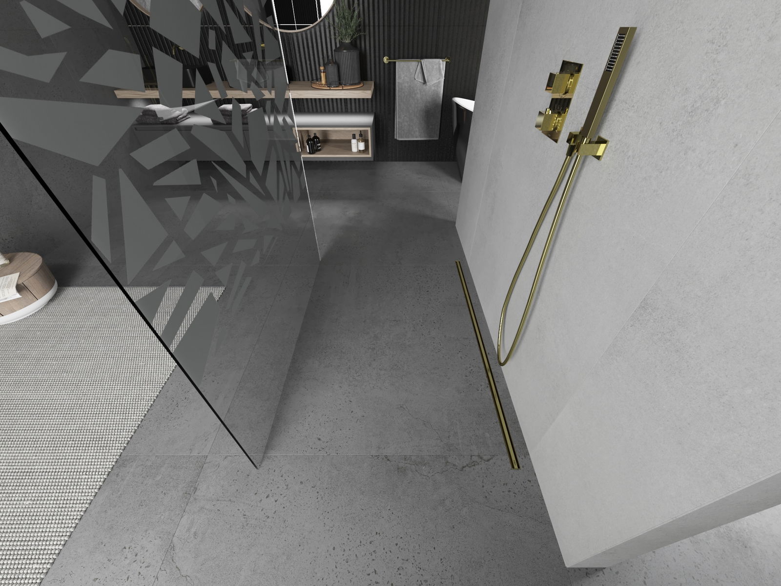 Mexen Kioto voľne stojaca sprchová stena 130 x 200 cm, biely vzor 8 mm, zlatá - 800-130-002-50-85
