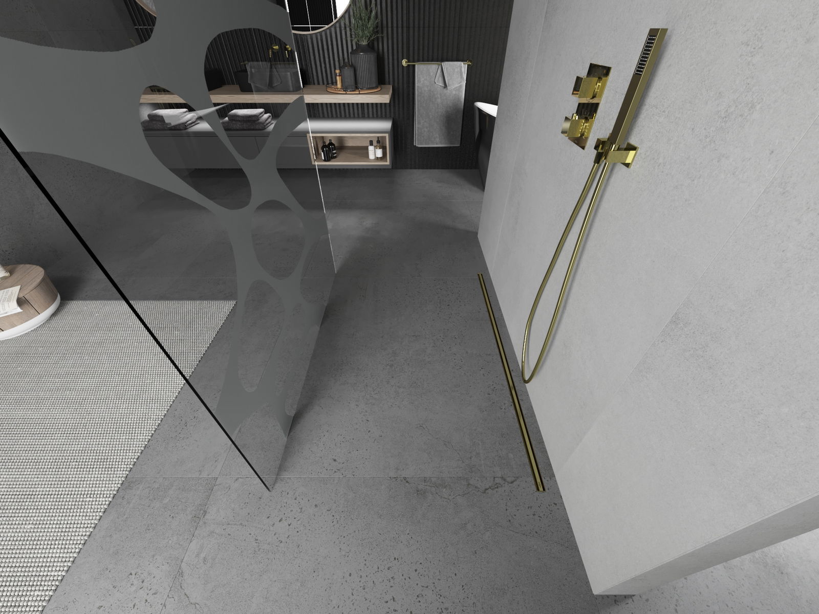 Mexen Kioto voľne stojaca sprchová stena 120 x 200 cm, biela vlna 8 mm, zlatá - 800-120-002-50-97