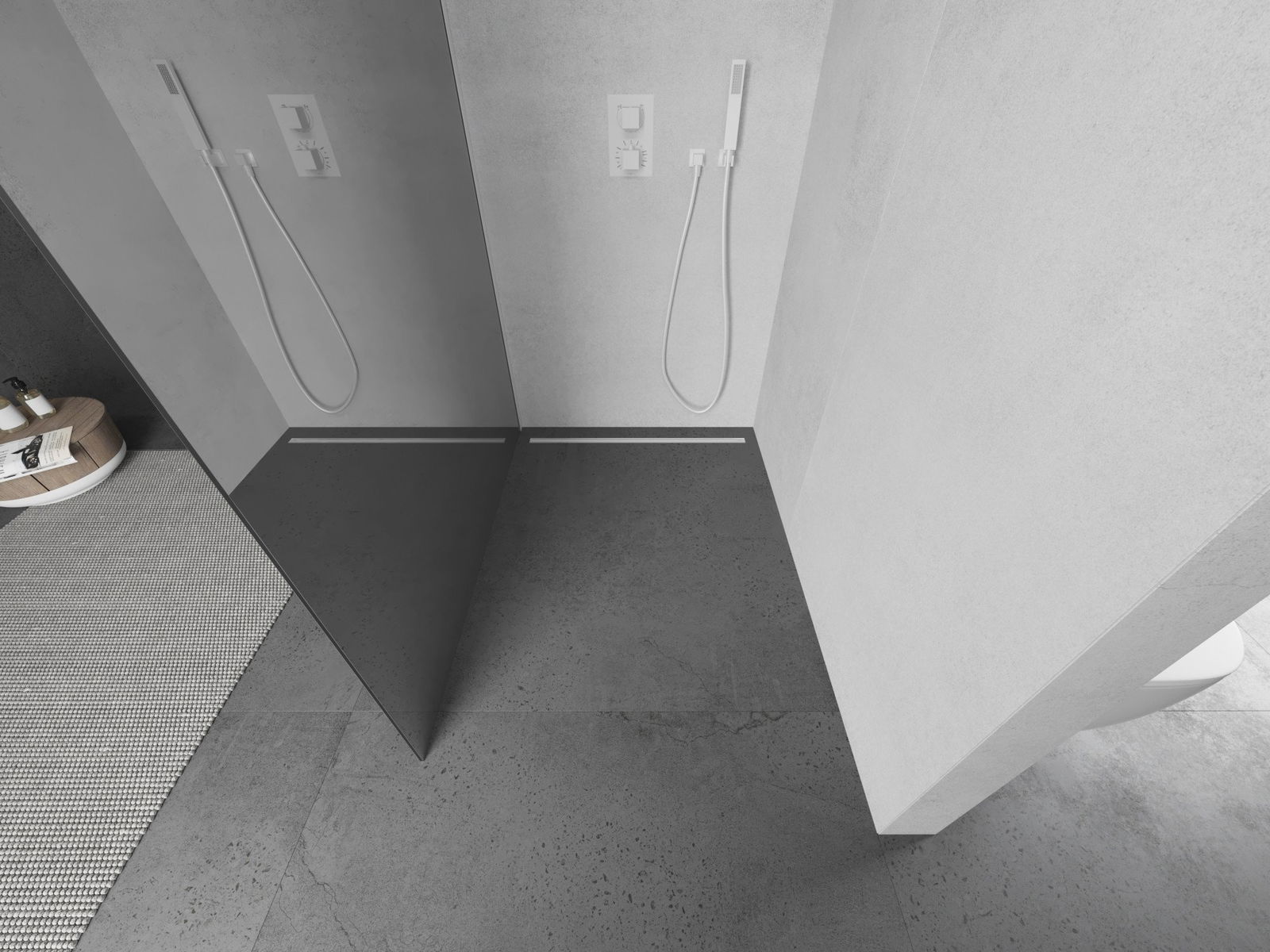 V závislosti od vašich potrieb je možné produkt namontovať na sprchovací podnos aj priamo na podlahe. Univerzálna montážna metóda vám umožňuje prispôsobiť produkt rôznym typom kúpeľní a nakonfigurovať priestor.