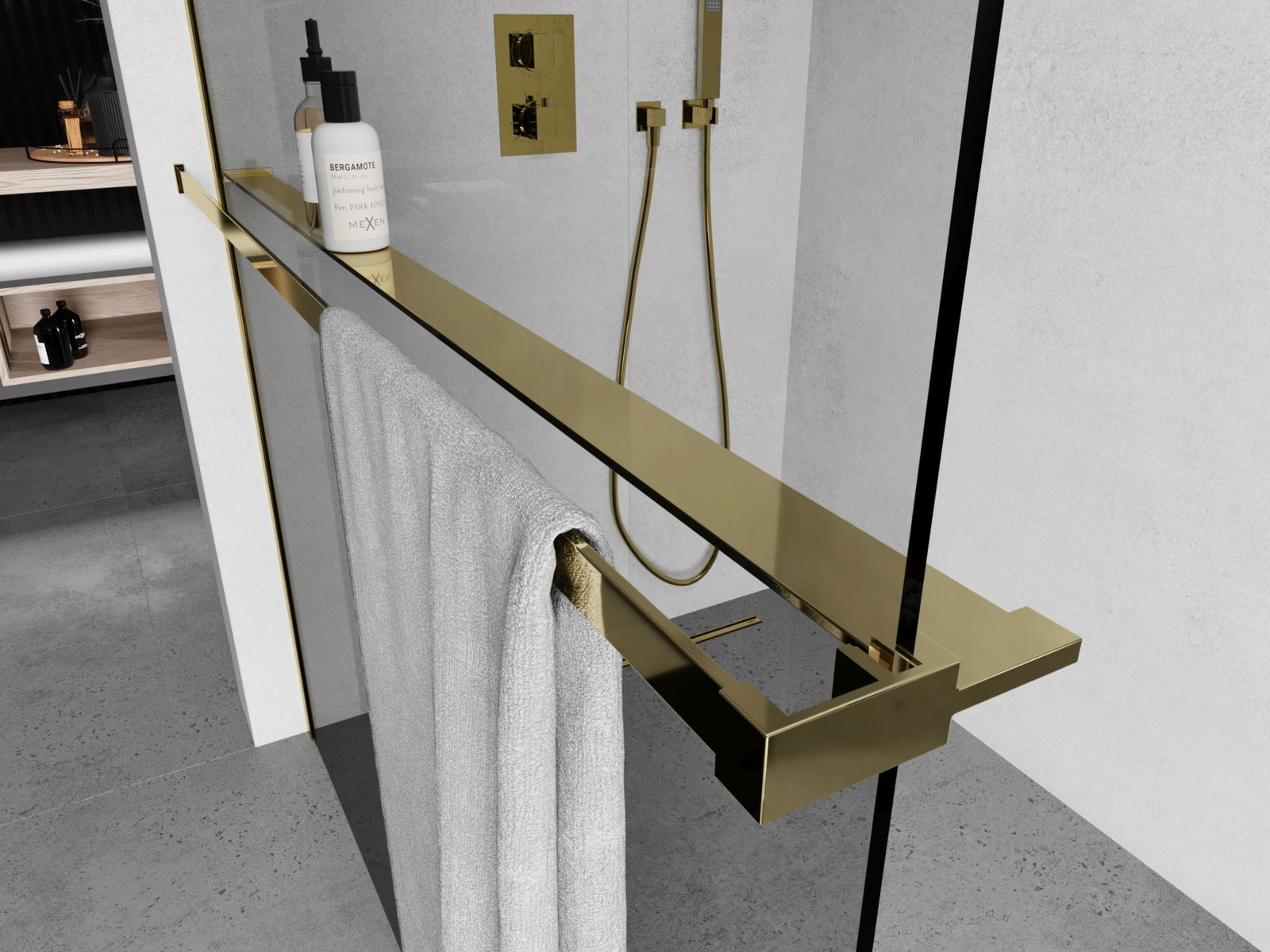 Mexen polica na sprchovú stenu s lištou na uteráky, zlatá - 800-02-50