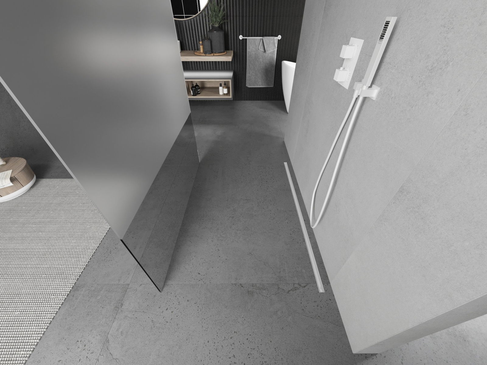 Mexen Kioto voľne stojaca sprchová stena 100 x 200 cm, transparentná/matná 8 mm, biela - 800-100-002-20-35