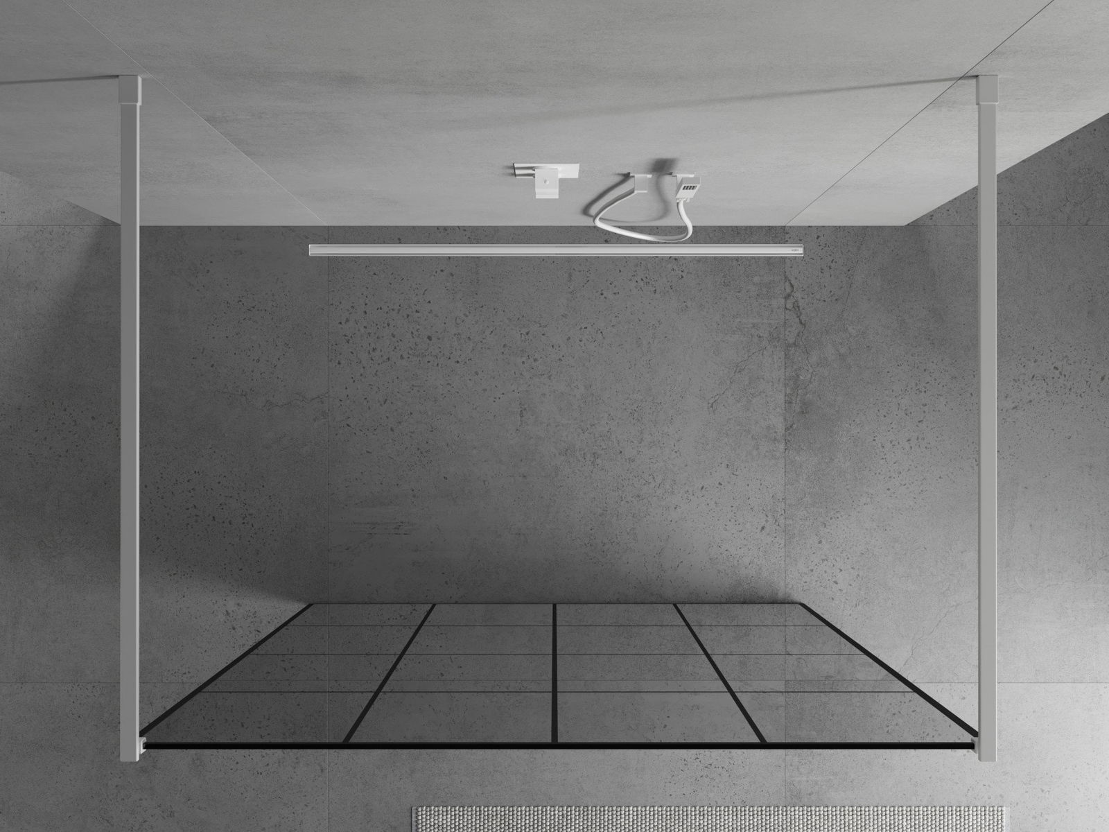 Mexen Kioto voľne stojaca sprchová stena 140 x 200 cm, čierna mriežka 8 mm, biela - 800-140-002-20-77
