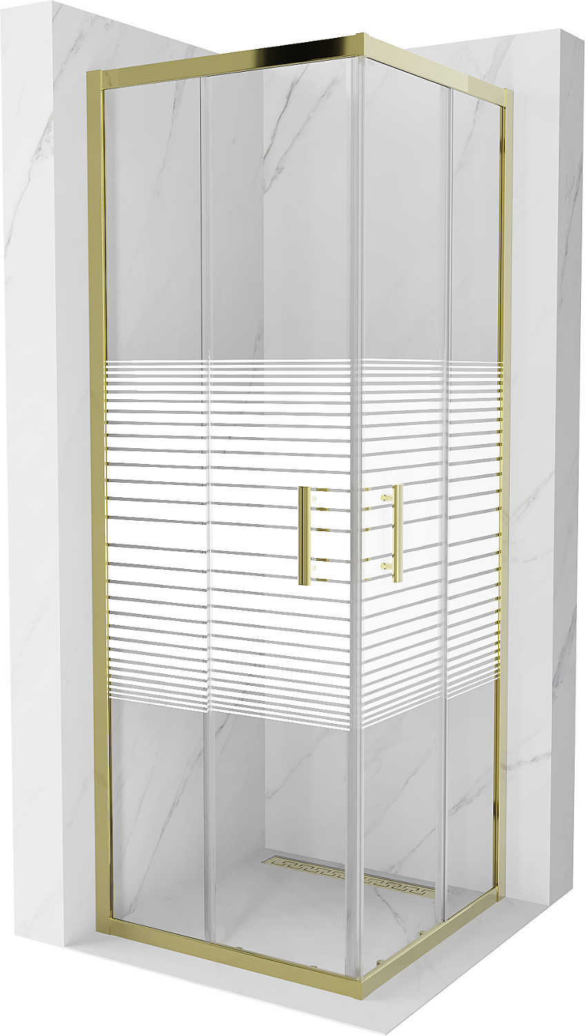 Mexen Rio štvorcový sprchový kút 70 x 70 cm, biele pruhy, zlatý - 860-070-070-50-20