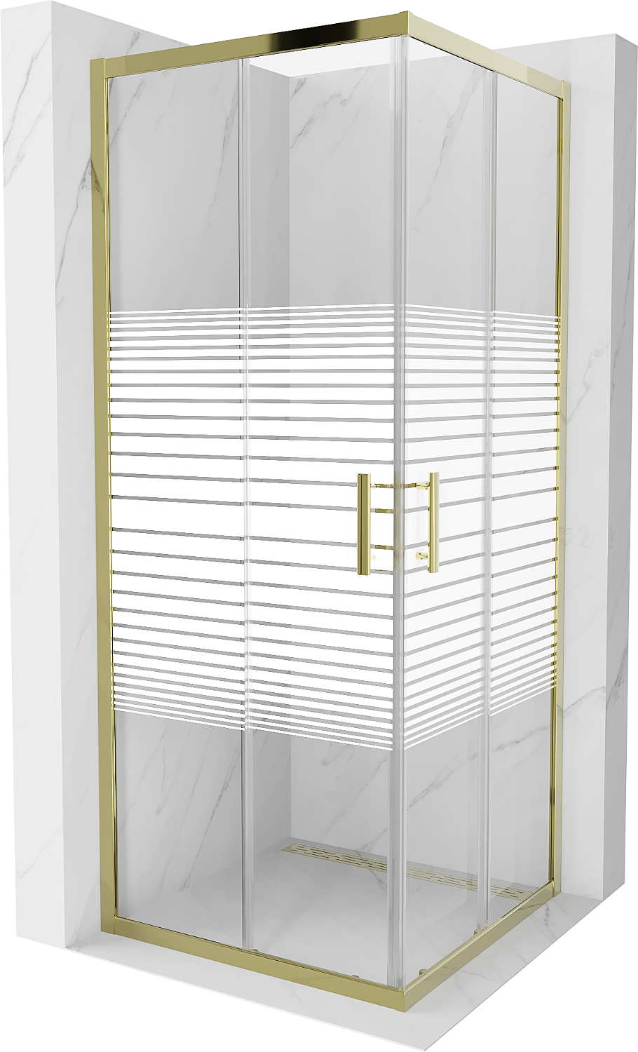 Mexen Rio štvorcová sprchová kabína 80 x 80 cm, biele pruhy, zlatá - 860-080-080-50-20
