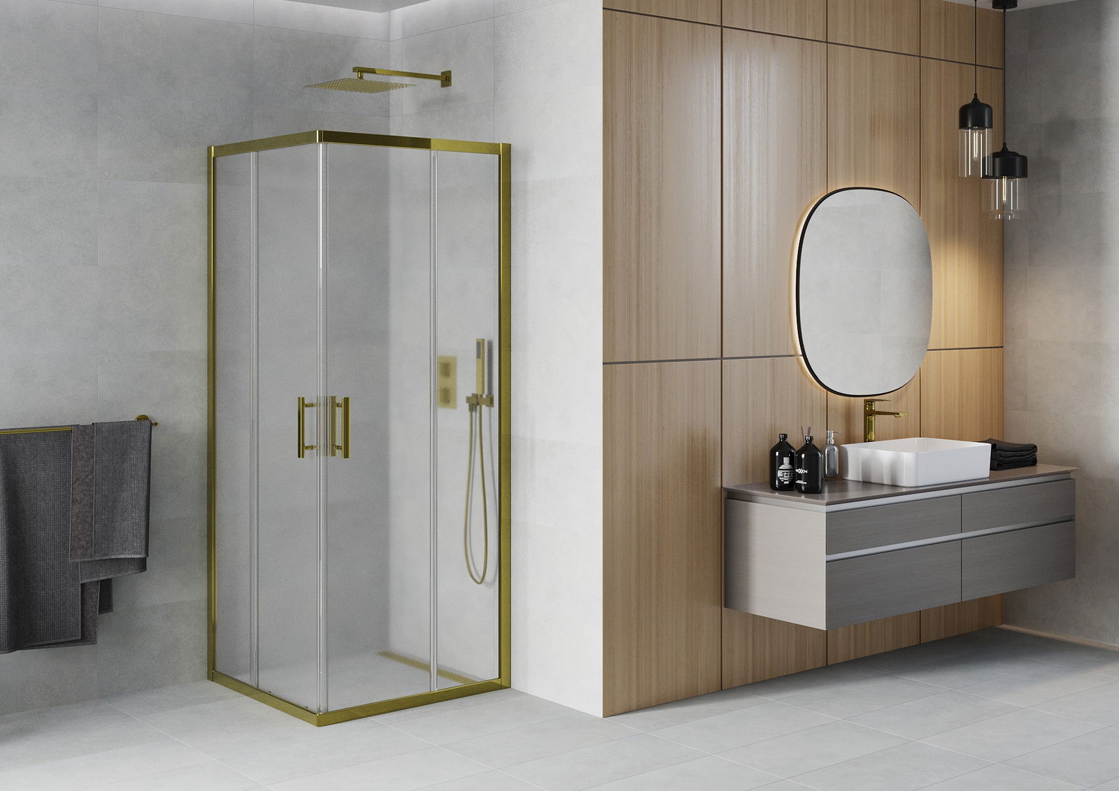 Praktická a pohodlná rukoväť bola vyrobená z odolného a odolného kovu. Módny tvar v kombinácii s povrchom prispôsobeným farbe profilov dodáva celku moderný a štýlový vzhľad, zdôrazňujúc estetiku každej kúpeľne.