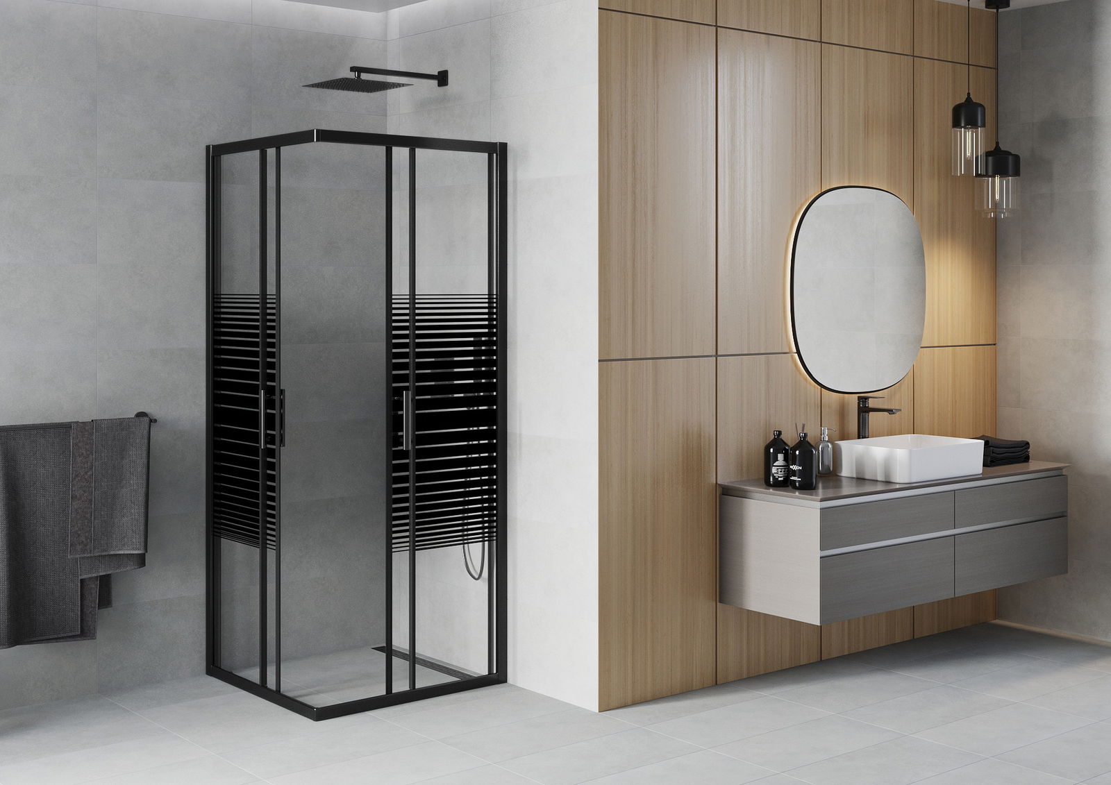 Mexen Rio štvorcová sprchová kabína 80 x 80 cm, čierne pruhy, čierna - 860-080-080-70-20