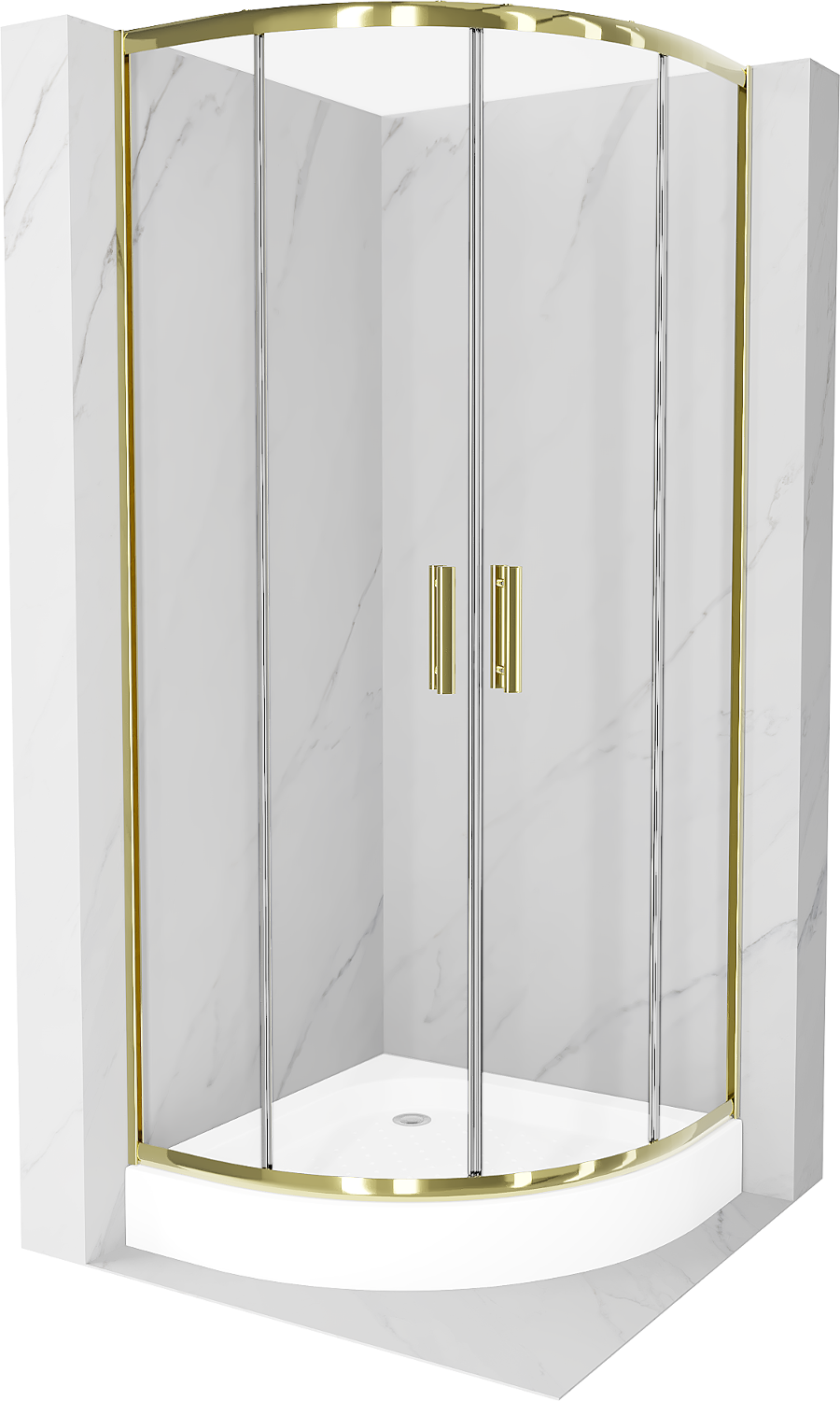 Mexen Rio sprchový kút polkruhový 90 x 90 cm, transparentný, zlatý + vanička Rio, biela - 863-090-090-50-00-4710