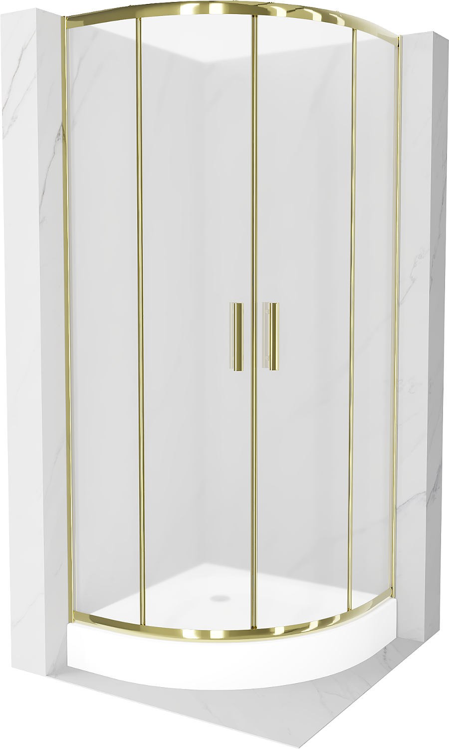 Mexen Rio polkruhová sprchová kabína 70 x 70 cm, matná, zlatá + vanička Rio, biela - 863-070-070-50-30-4710