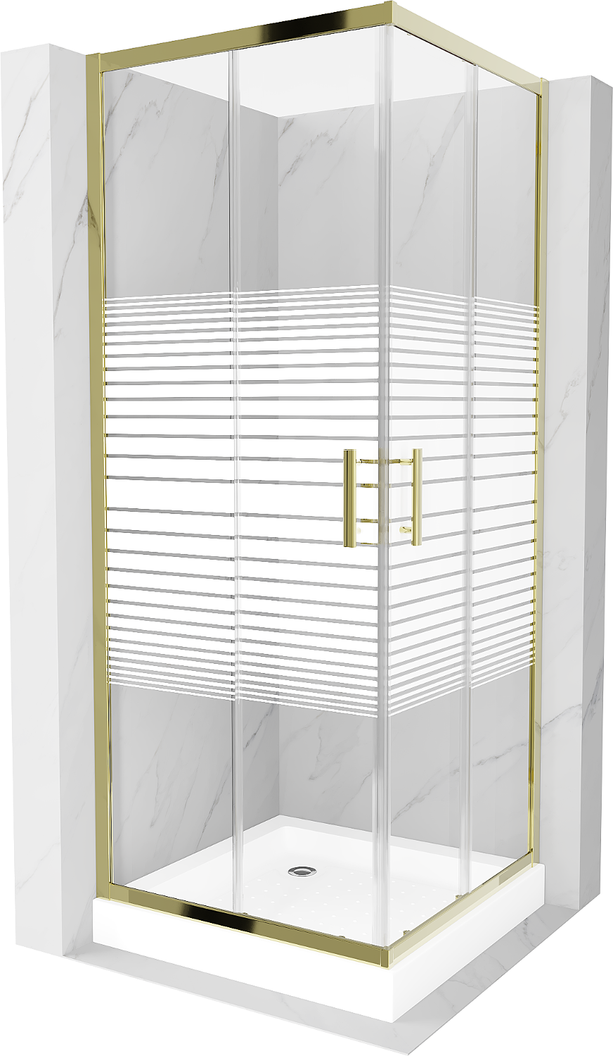 Mexen Rio štvorcová sprchová kabína 80 x 80 cm, biele pásy, zlatá + vanička, biela - 860-080-080-50-20-4510