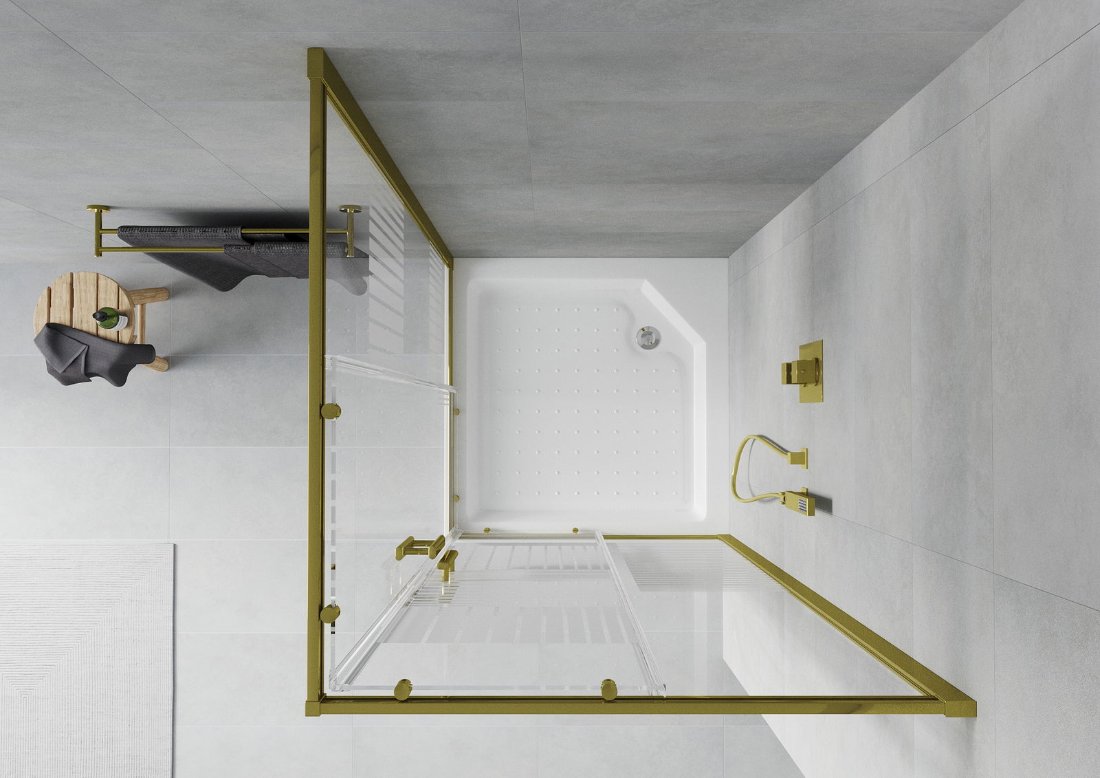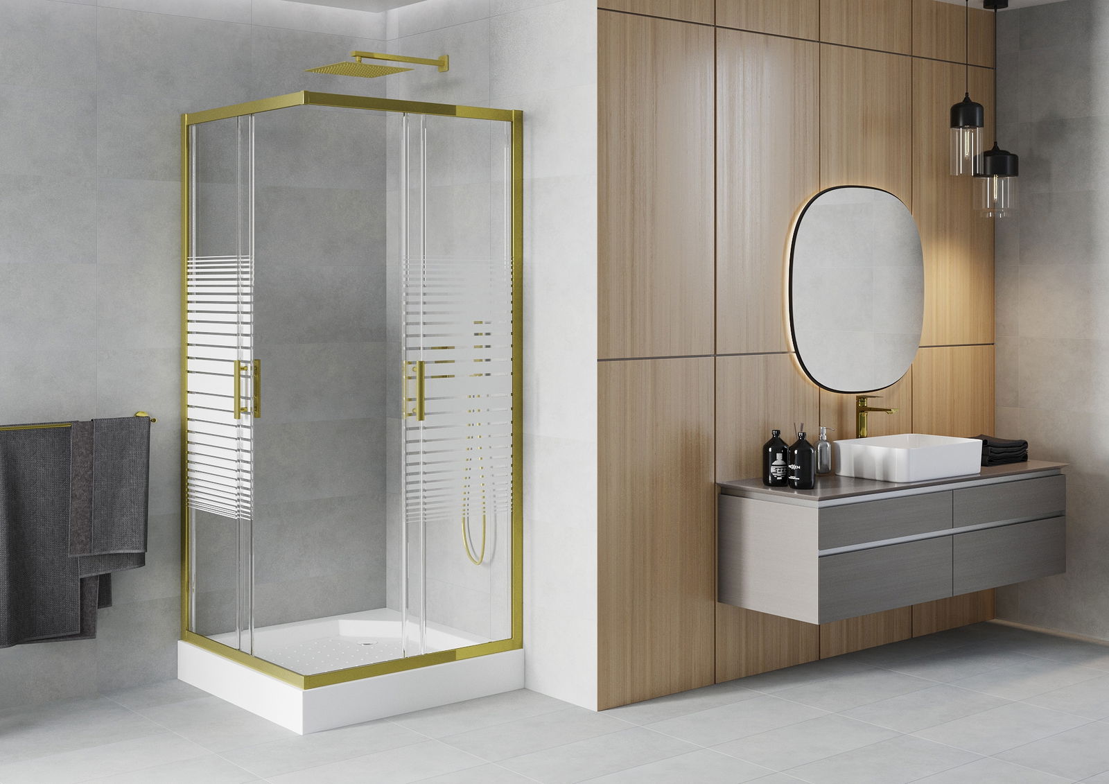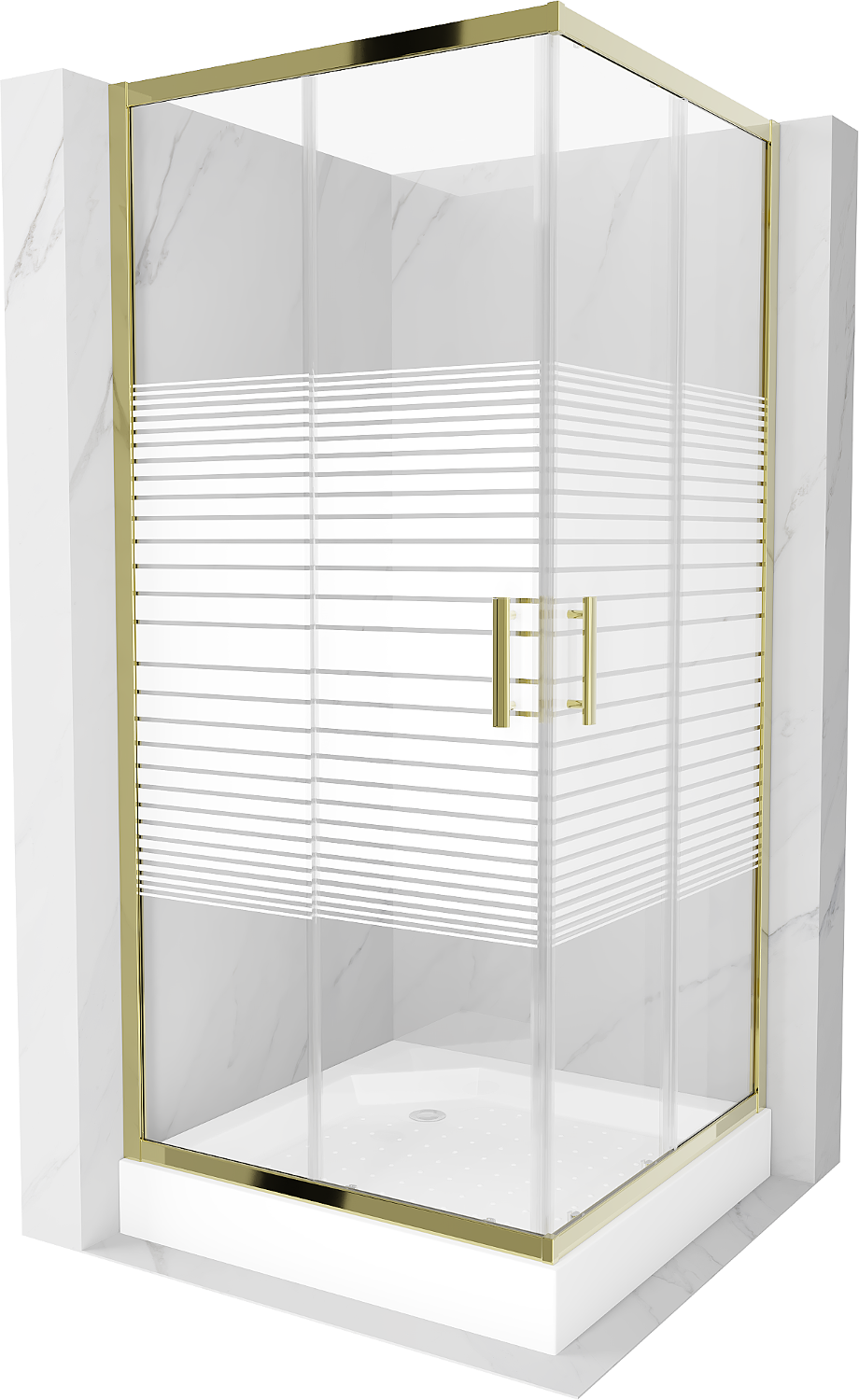 Mexen Rio štvorcový sprchový kút 90 x 90 cm, biele pruhy, zlatý + sprchová vanička, biela - 860-090-090-50-20-4510