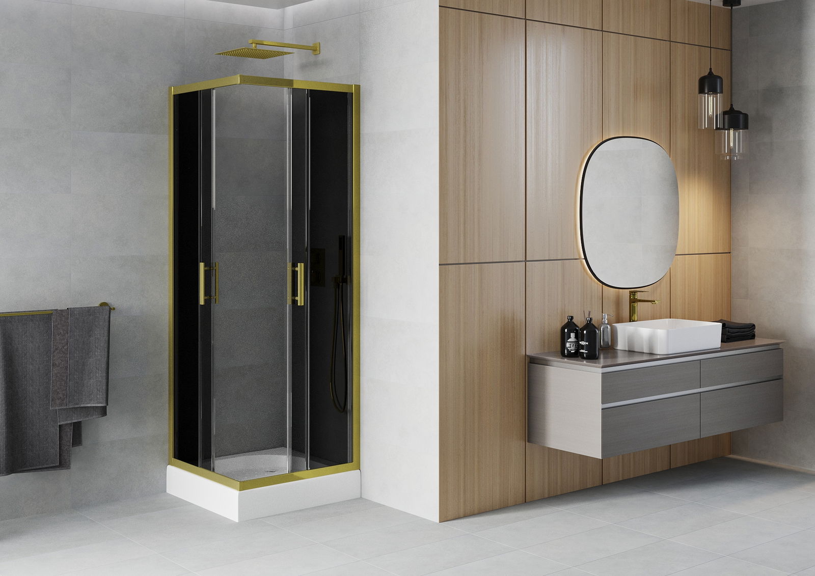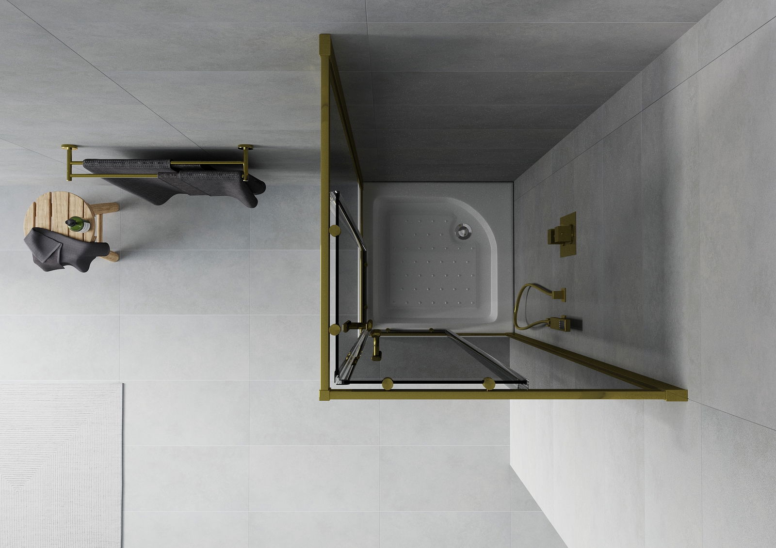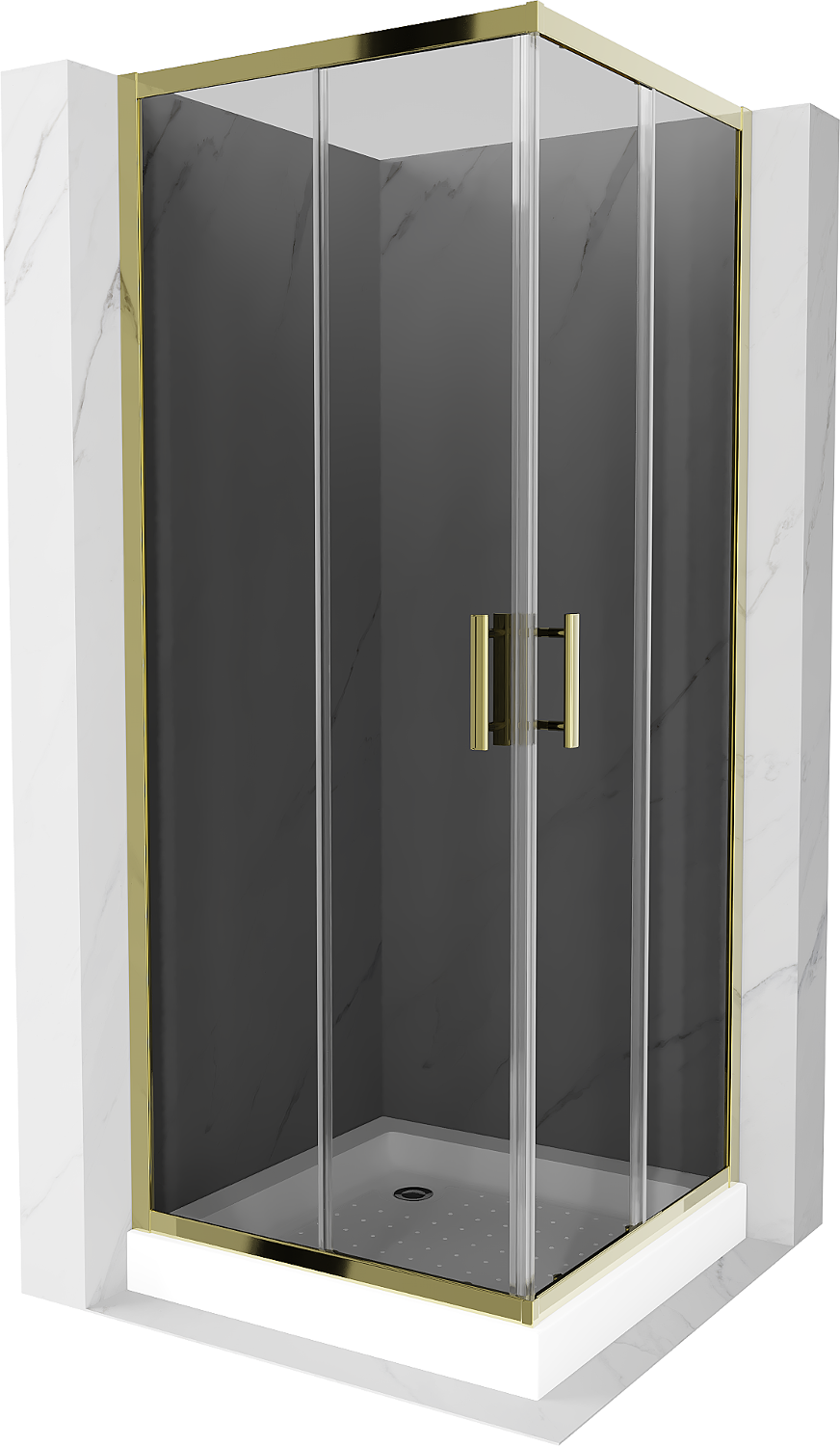 Mexen Rio štvorcová sprchová kabína 80 x 80 cm, grafit, zlatá + sprchová vanička Rio, biela - 860-080-080-50-40-4510