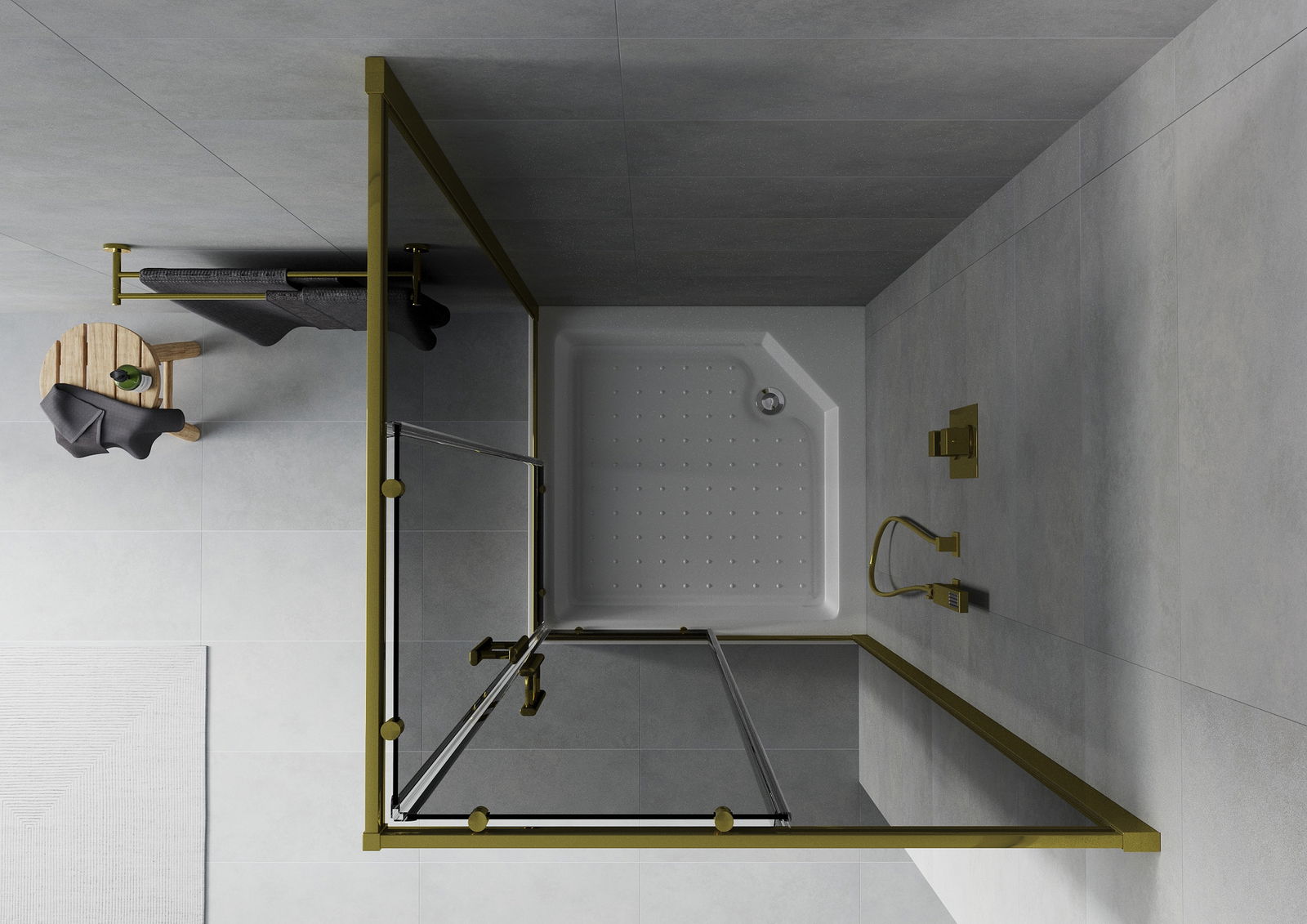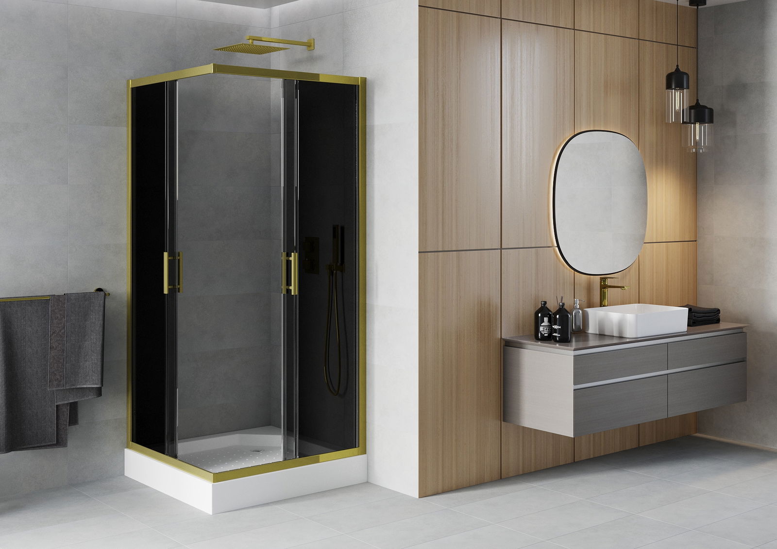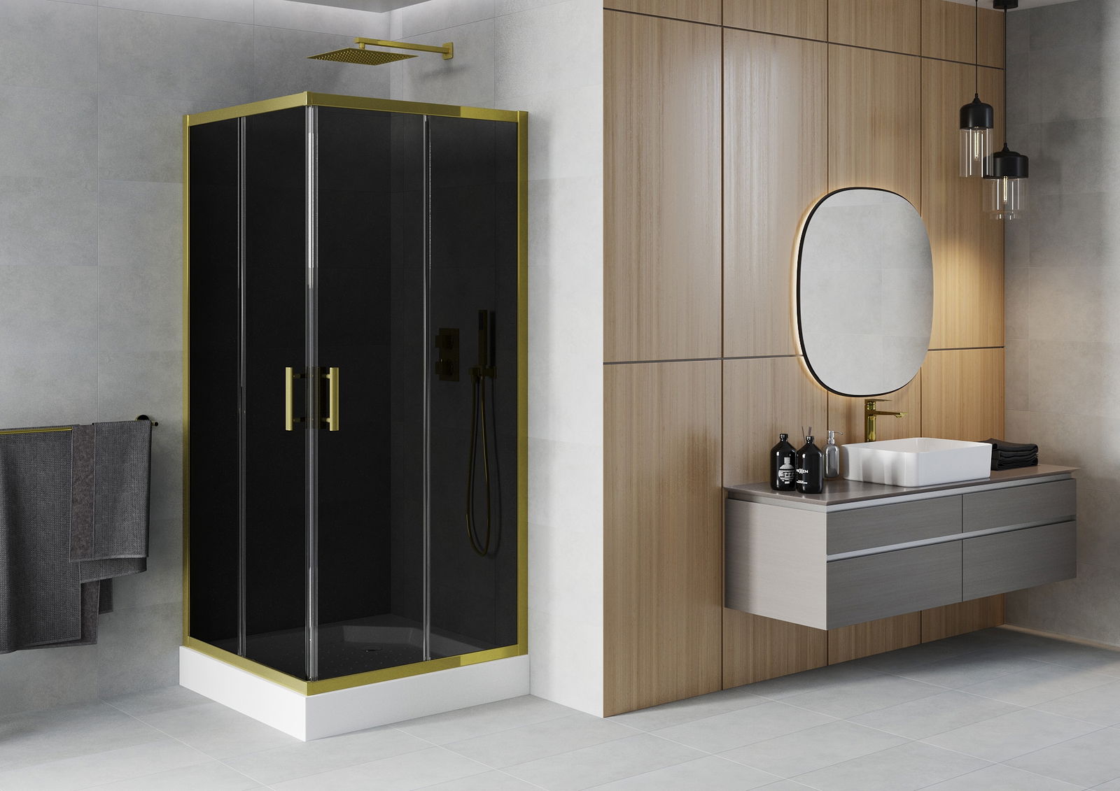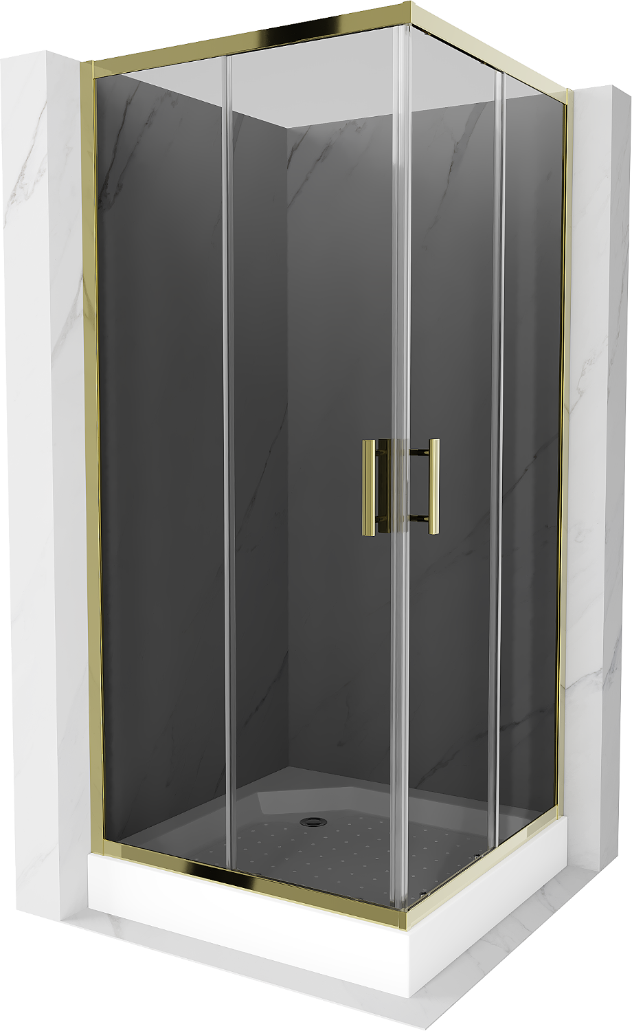 Mexen Rio štvorcová sprchová kabína 90 x 90 cm, grafit, zlatá + vanička Rio, biela - 860-090-090-50-40-4510