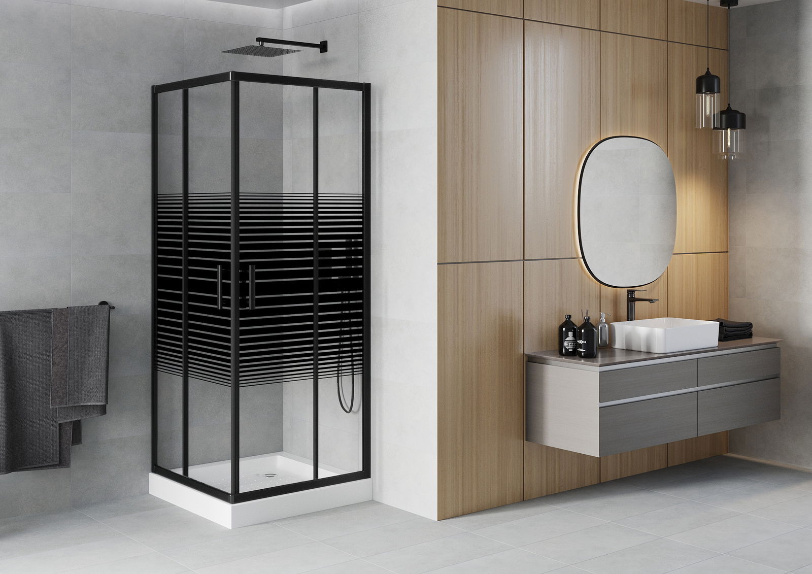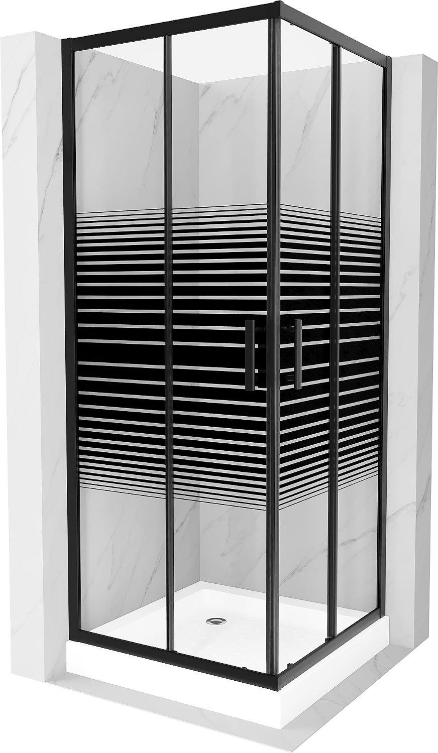 Mexen Rio štvorcová sprchová kabína 80 x 80 cm, čierne pásy, čierna + sprchová vanička, biela - 860-080-080-70-20-4510