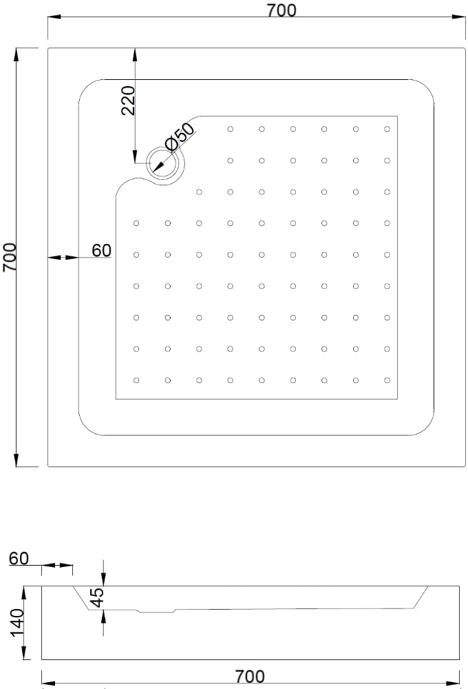 Veľkosť: 70x70x14 cm