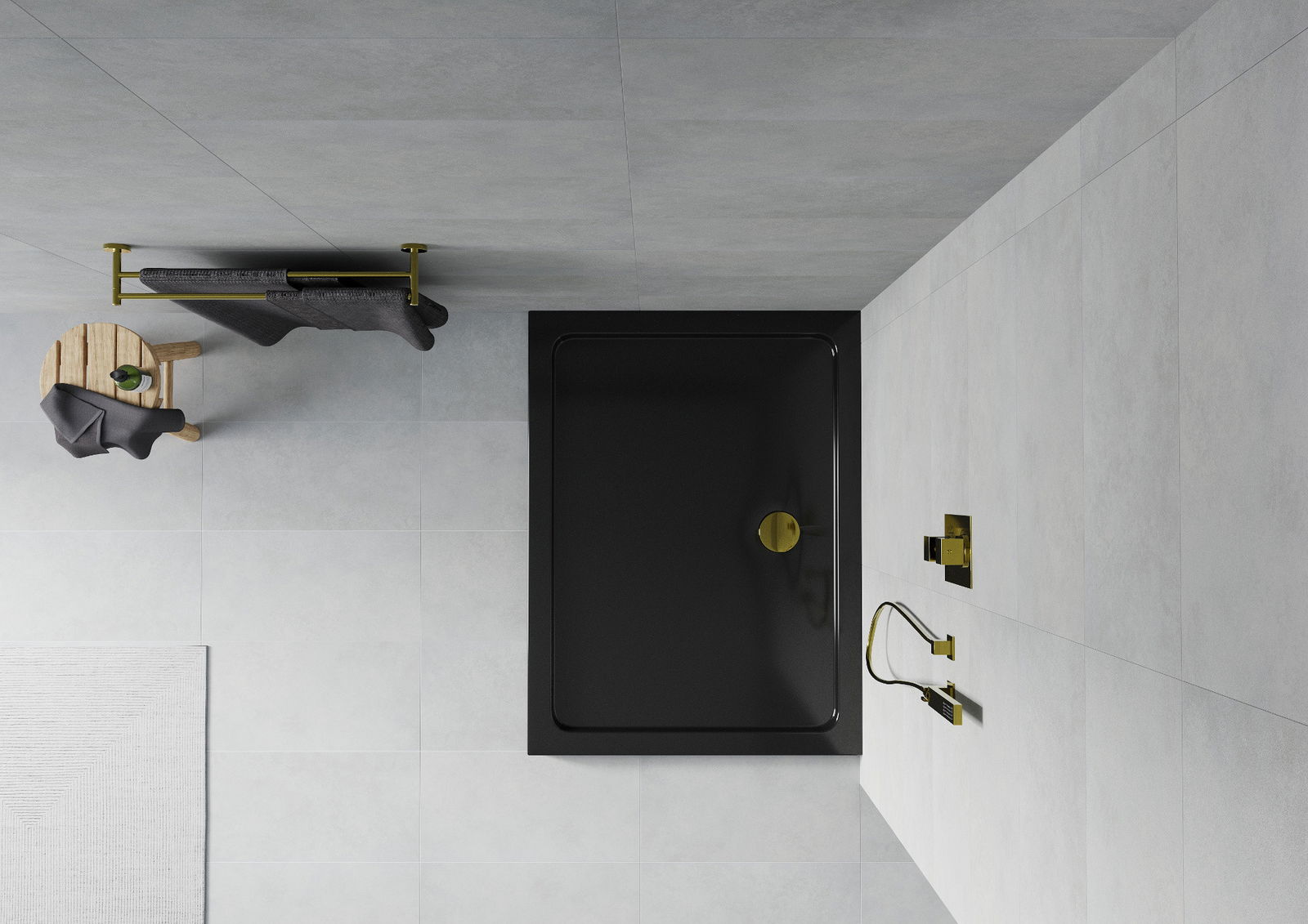 Mexen Flat obdĺžnikový sprchový kút slim 110 x 100 cm, čierny, sifón zlatý - 40701011G