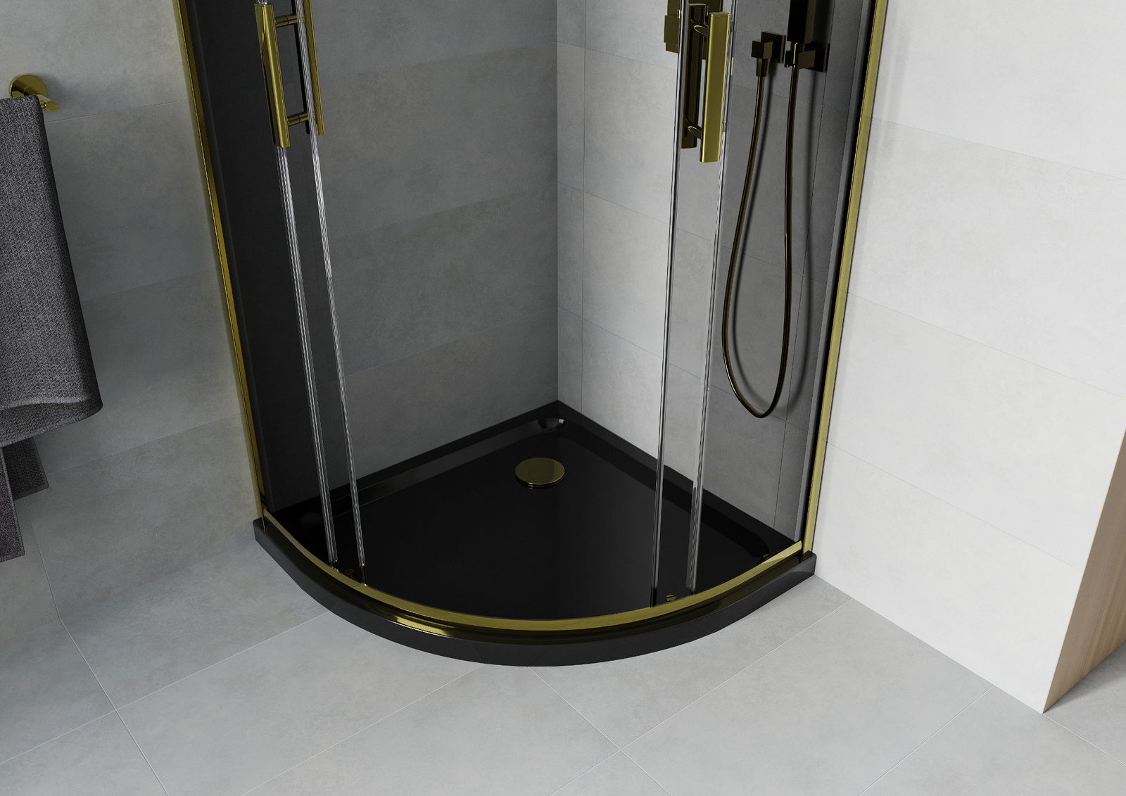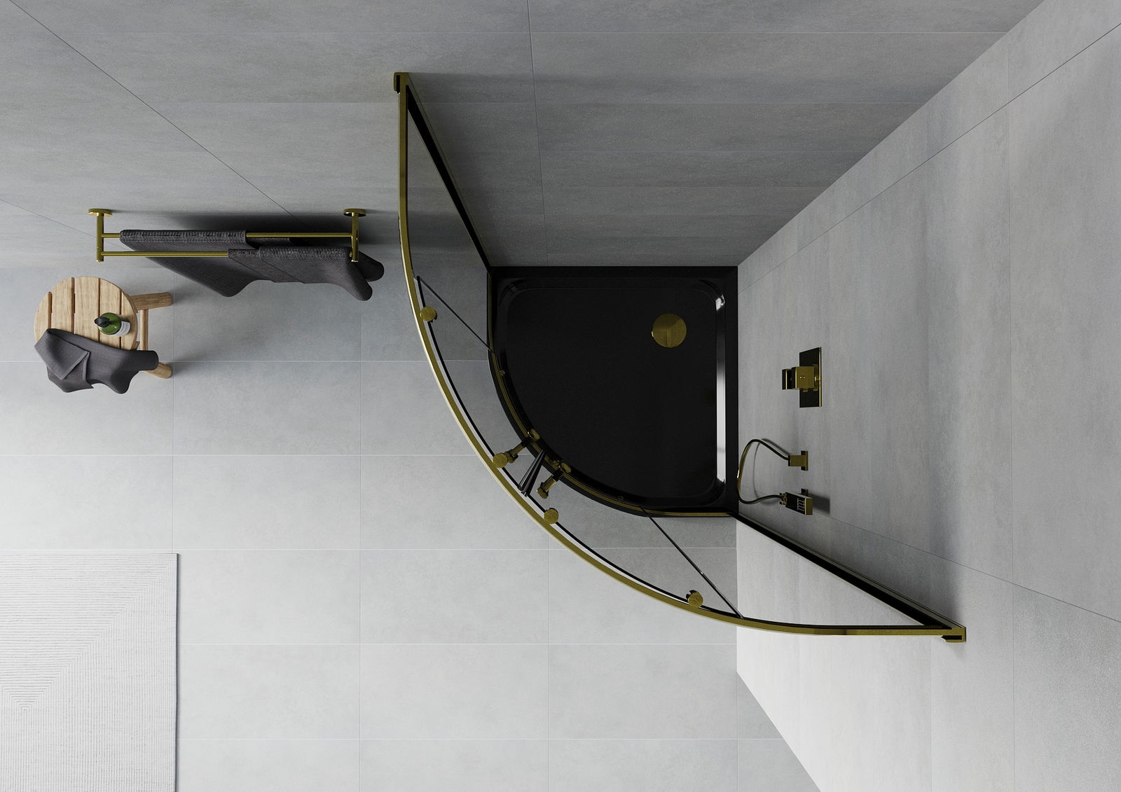Mexen Rio polokruhová sprchová kabína 80 x 80 cm, grafit, zlatá + vanička Flat, čierna - 863-080-080-50-40-4170G