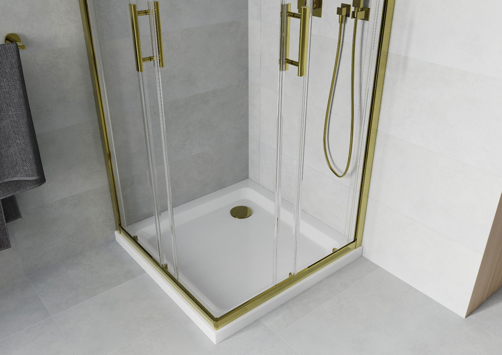 Mexen Rio sprchovací kút štvorcový 70 x 70 cm, transparentný, zlatý + vanička Flat, biela - 860-070-070-50-00-4010G