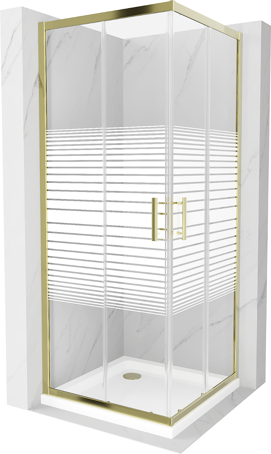 Mexen Rio štvorcový sprchovací kút 80 x 80 cm, biele pruhy, zlatý + Flat sprchová vanička, biela - 860-080-080-50-20-4010G
