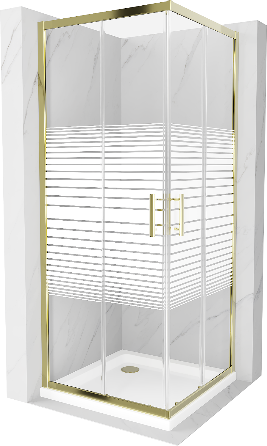 Mexen Rio štvorcová sprchová kabína 90 x 90 cm, biele pruhy, zlatá + sprchová vanička Flat, biela - 860-090-090-50-20-4010G