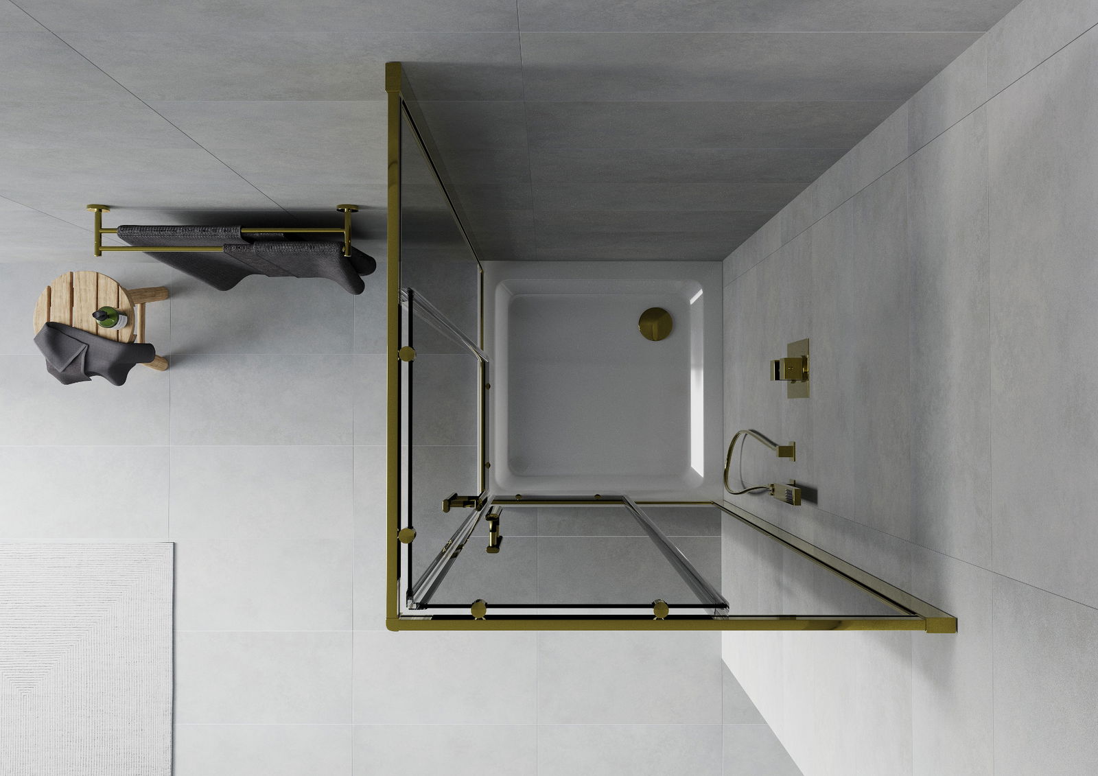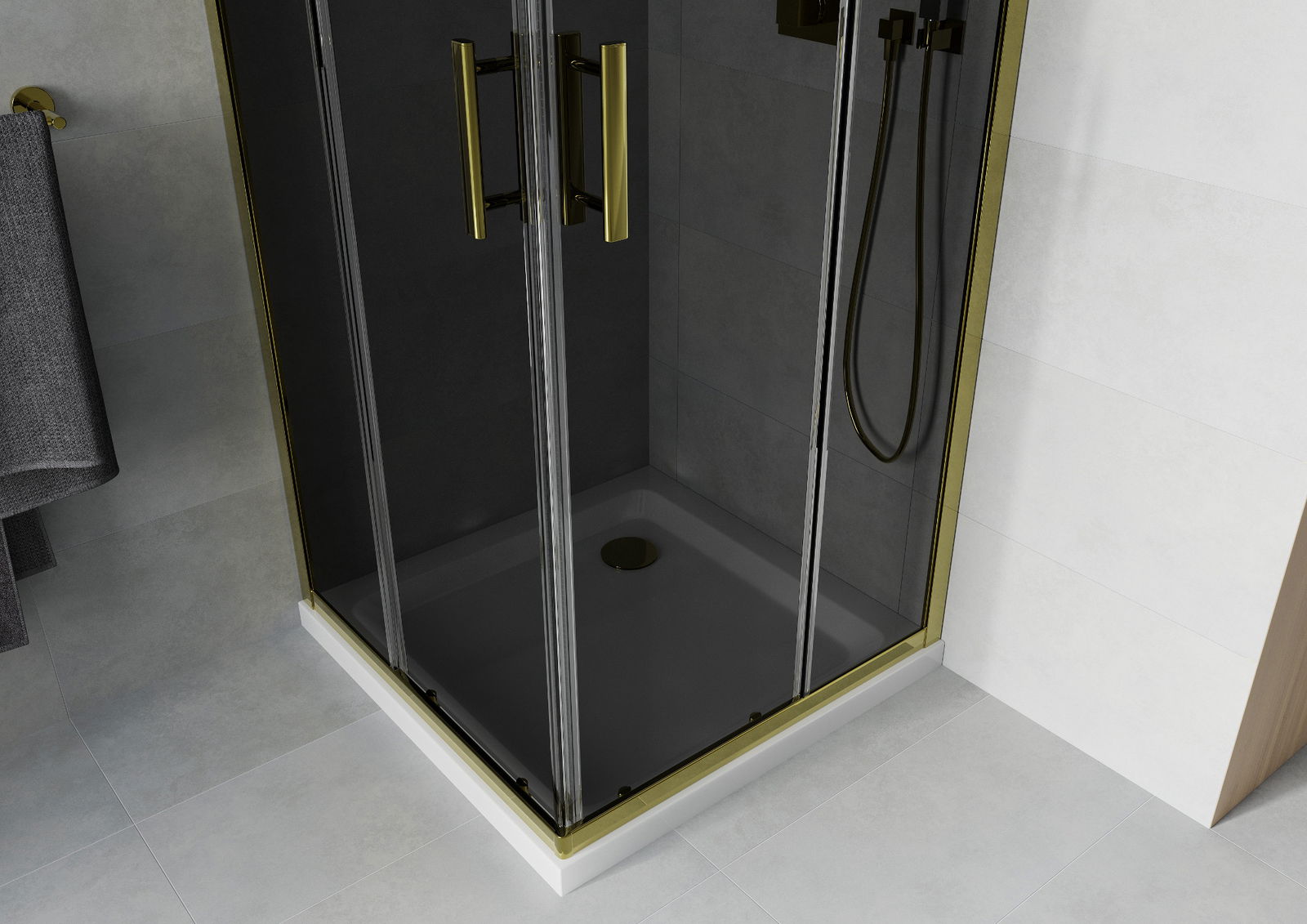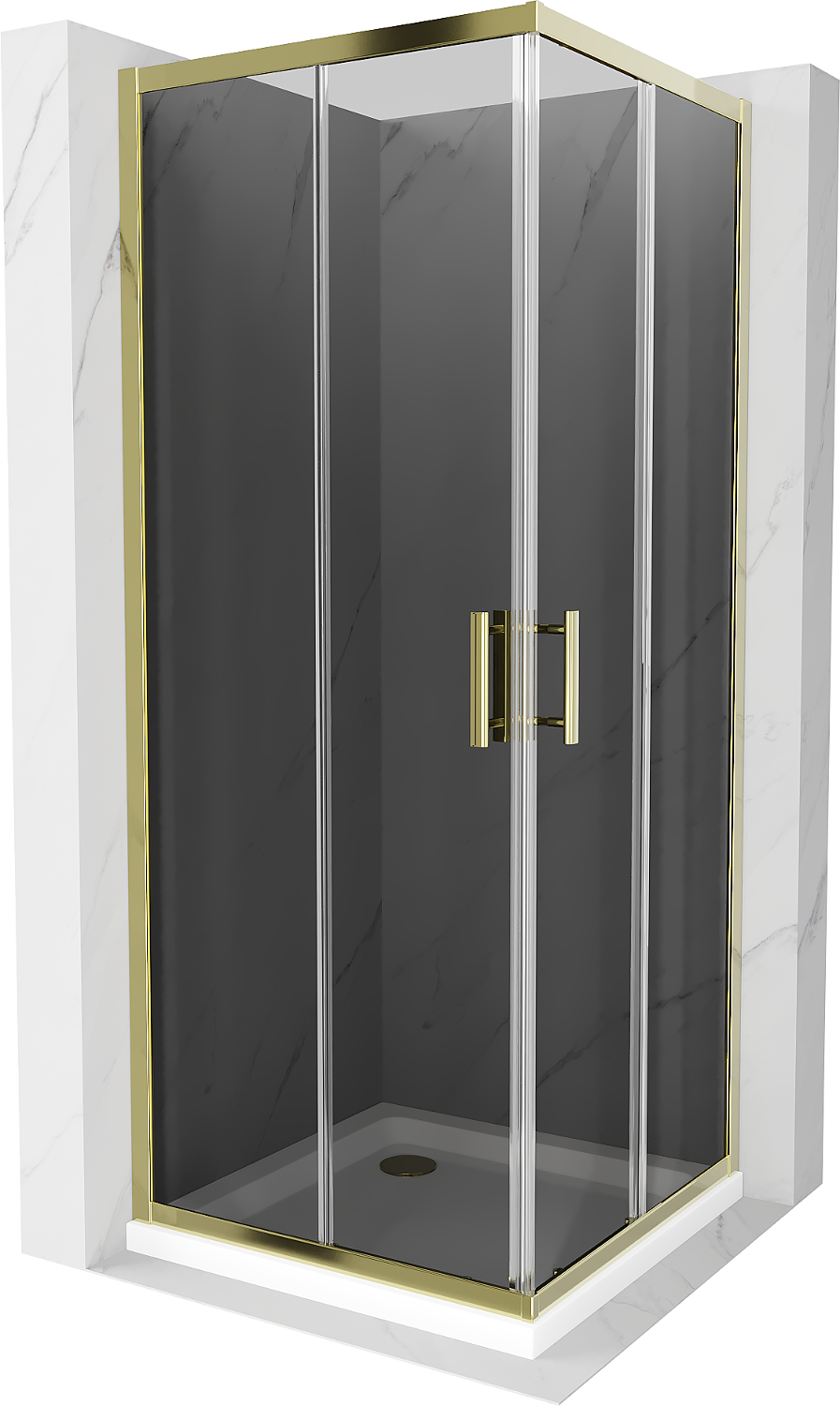 Mexen Rio štvorcová sprchová kabína 90 x 90 cm, grafitová, zlatá + vanička Flat, biela - 860-090-090-50-40-4010G