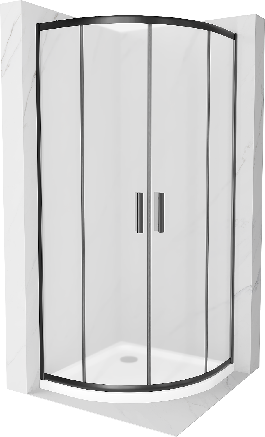 Mexen Rio polkruhová sprchová kabína 90 x 90 cm, mrazené sklo, čierna + sprchová vanička Flat, biela - 863-090-090-70-30-4110B