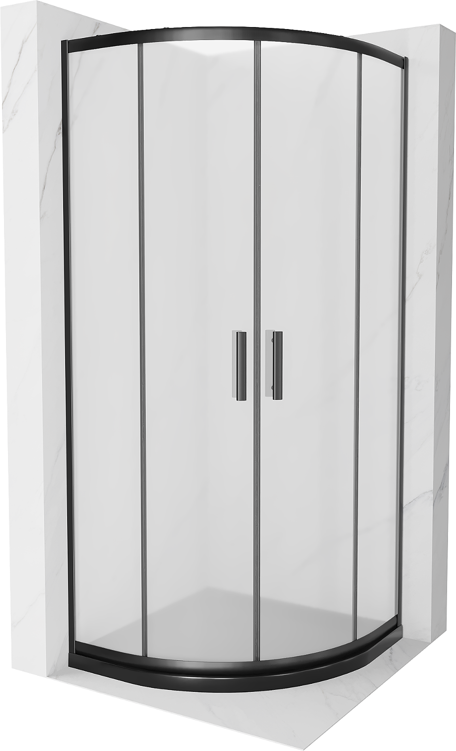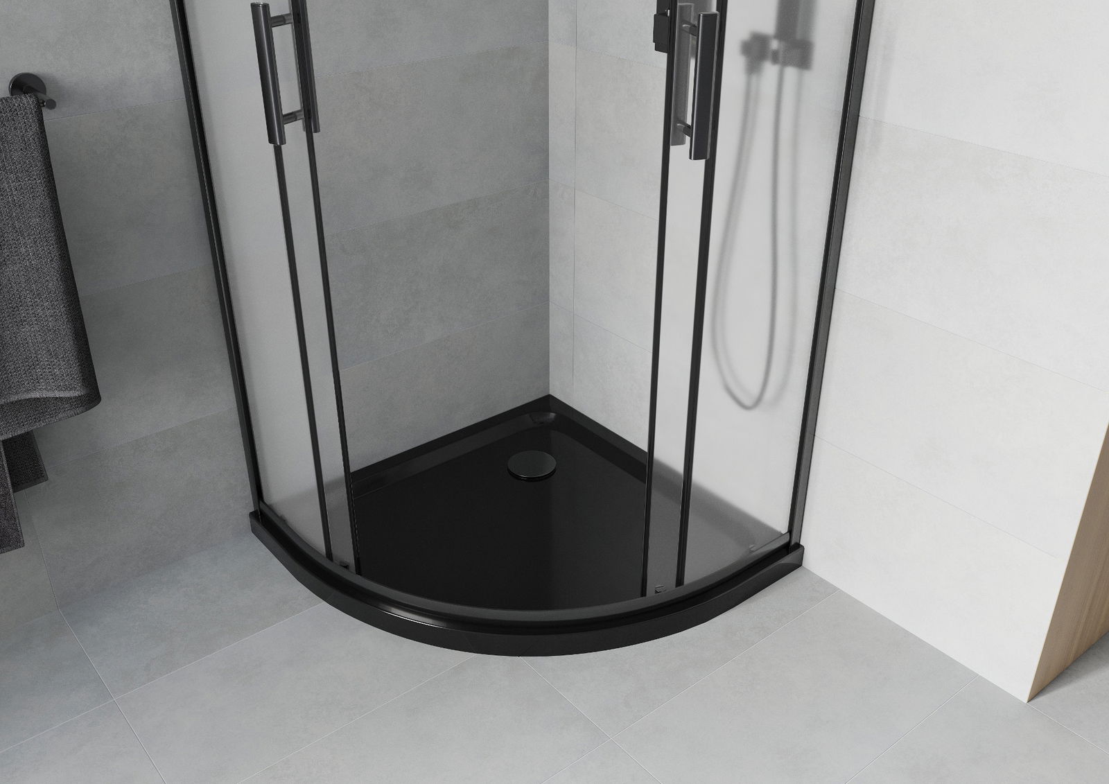 Mexen Rio polkruhový sprchovací kút 80 x 80 cm, matný, čierny + vanička Flat, čierna - 863-080-080-70-30-4170B