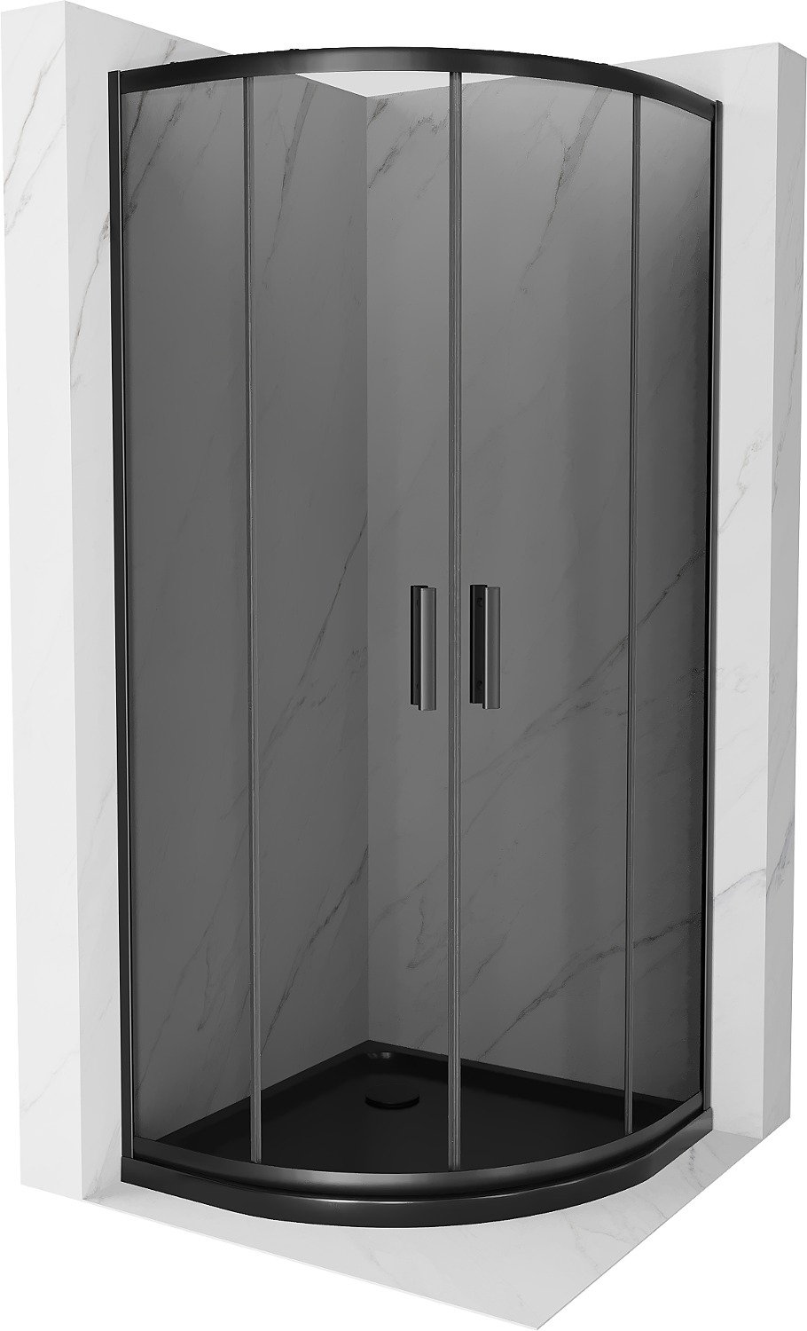 Mexen Rio polkruhová sprchová kabína 80 x 80 cm, grafit, čierna + vanička Flat, čierna 863-080-080-70-40-4170B