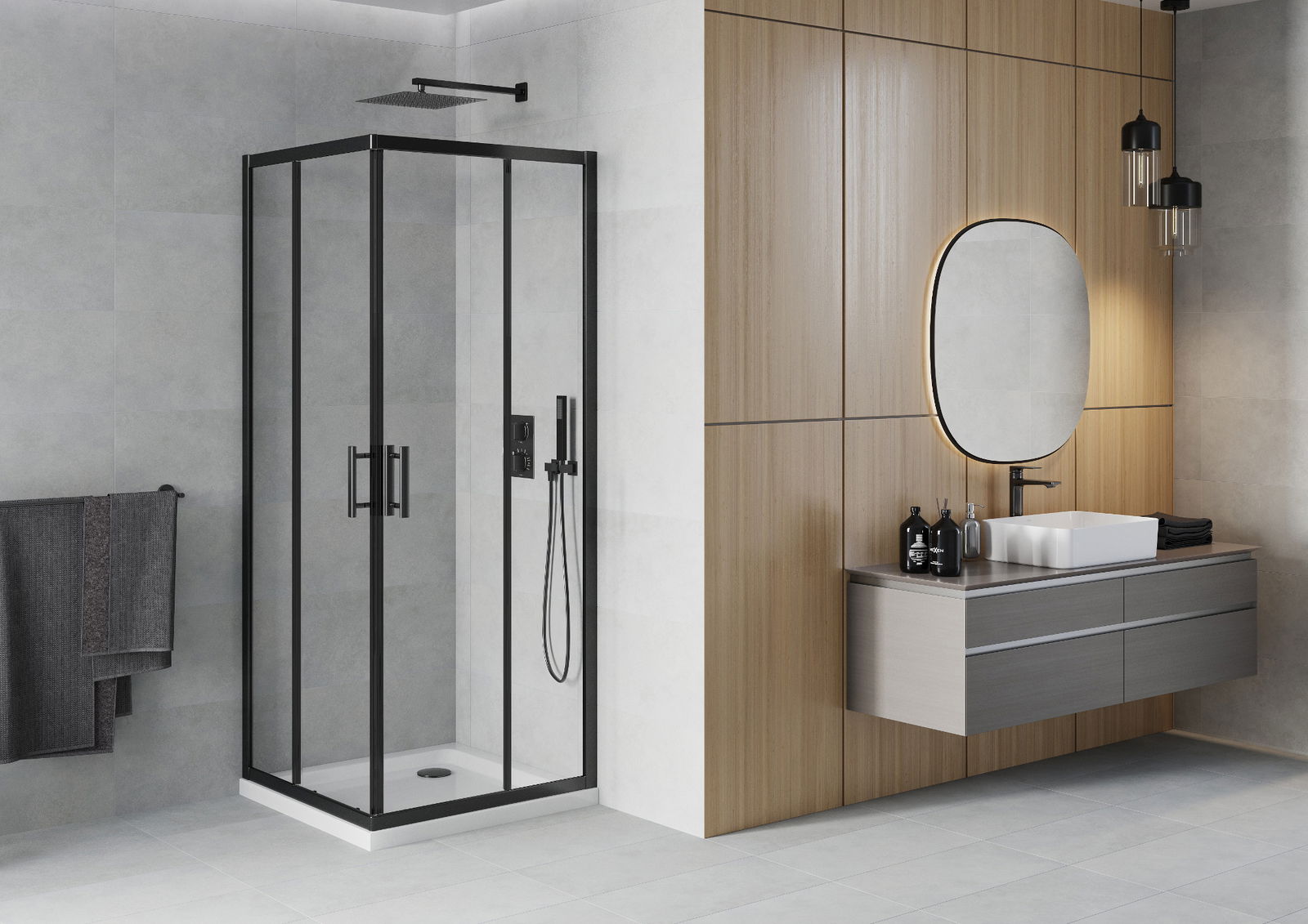 Posuvné dvere sa pohybujú okolo špeciálnych sprievodcov a na ich otvorenie nevyžadujú ďalší priestor, takže budú pracovať v menších kúpeľniach. Vďaka dvojitým valcom vyrobeným z odolného plastu je ich pohyb plynulý.