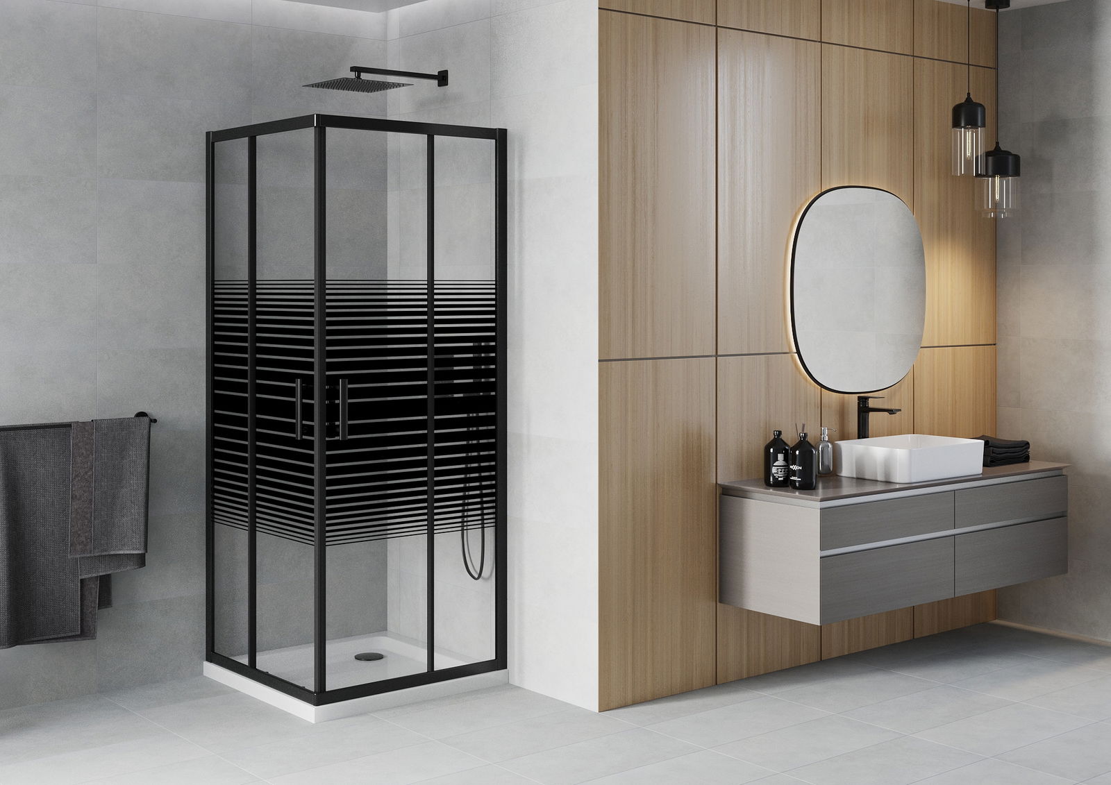 Mexen Rio štvorcová sprchová kabína 80 x 80 cm, čierne pásy, čierna + vanička Flat, biela - 860-080-080-70-20-4010B