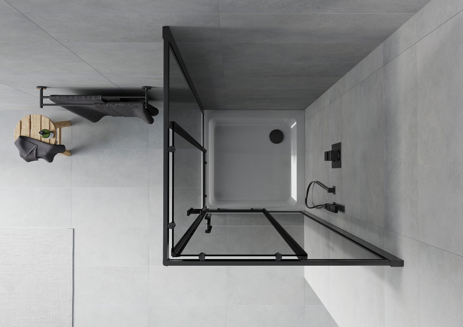 Mexen Rio štvorcový sprchový kút 90 x 90 cm, transparentný, čierny - 860-090-090-70-00