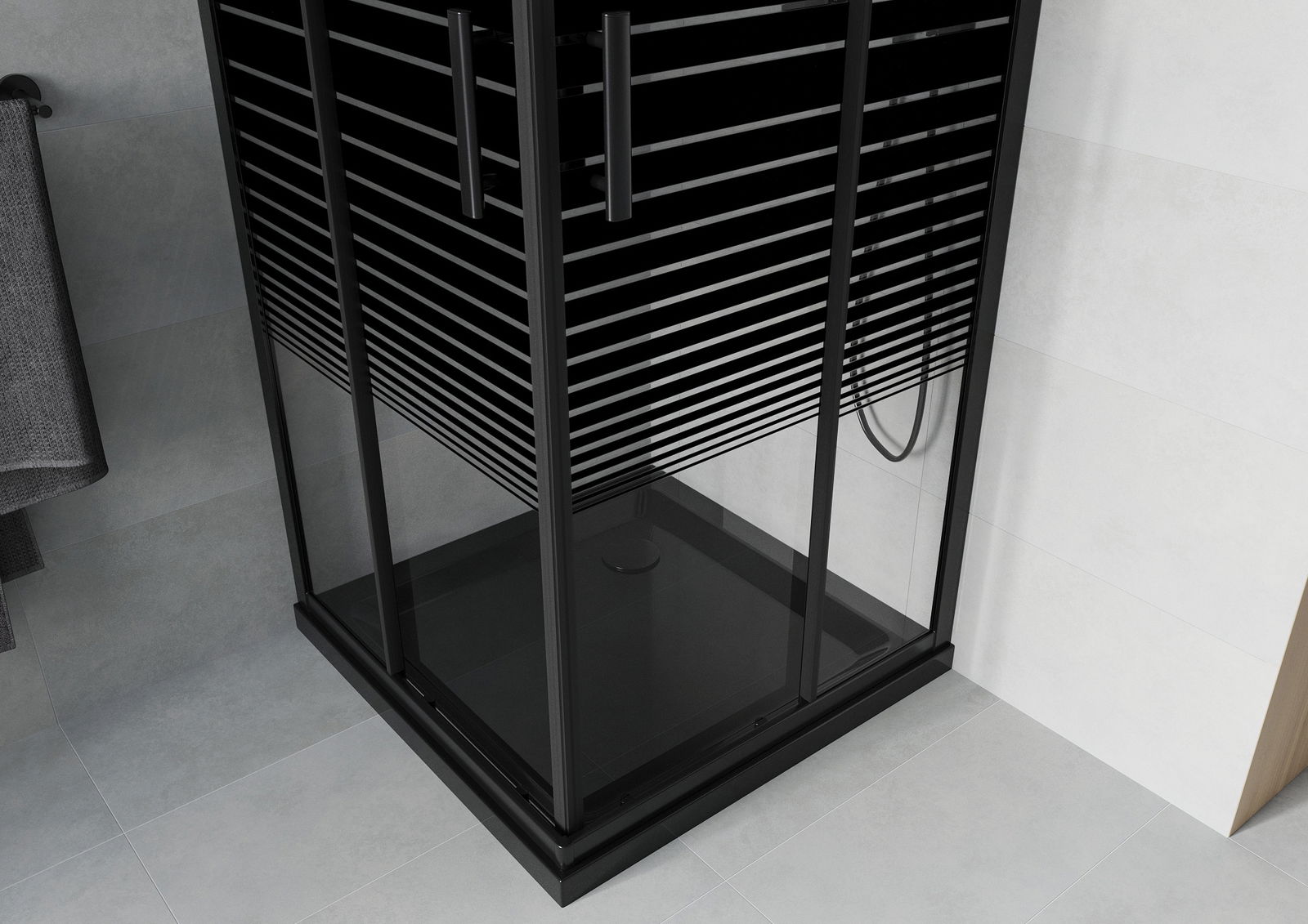Mexen Rio štvorcová sprchová kabína 80 x 80 cm, čierne pásy, čierna + plytká vanička, čierna - 860-080-080-70-20-4070B