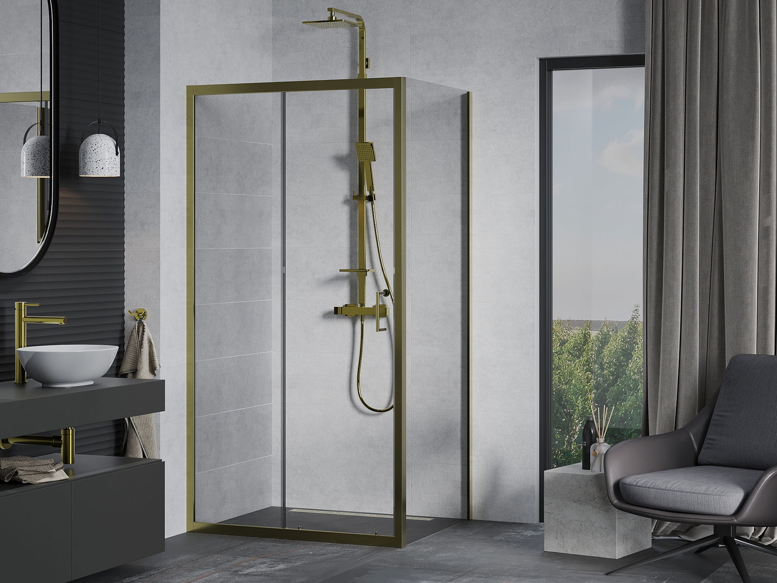 Mexen Apia posuvná sprchová kabína 135 x 90 cm, priehľadná, zlatá - 840-135-090-50-00