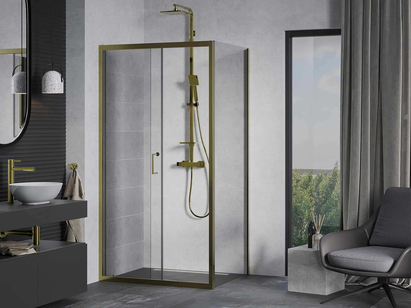 Praktická a pohodlná rukoväť bola vyrobená z odolného a odolného kovu. Módny tvar v kombinácii s povrchom prispôsobeným farbe profilov dodáva celku moderný a štýlový vzhľad, zdôrazňujúc estetiku každej kúpeľne.